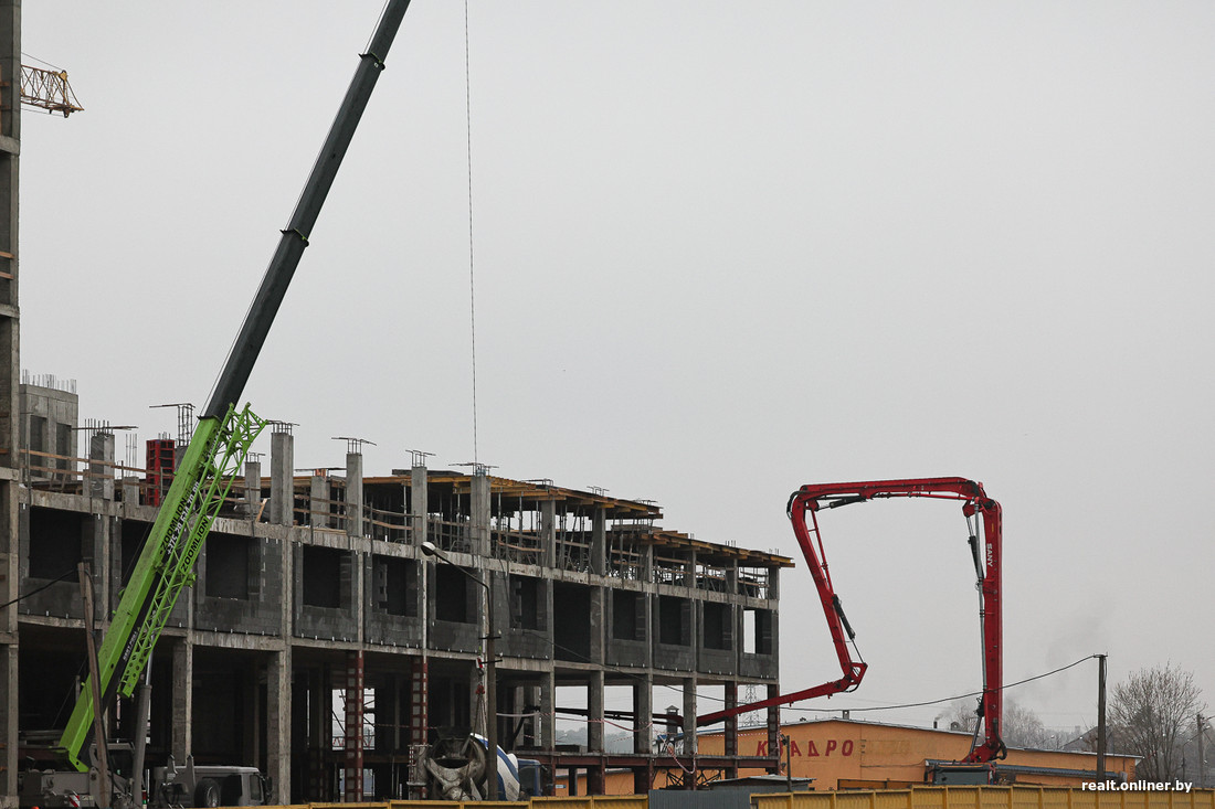 Растет в Минске и еще одно важное медицинское учреждение. База для него — опять же долгострой. Располагался бесхозный бетонный скелет на 5-м километре МКАД, в районе Степянки. Годами недострой маячил перед глазами автомобилистов, его уже даже стали воспринимать как нечто само собой разумеющееся. Однако в мае за высоким строительным забором вдруг началась активность: часть бетонных конструкций безжалостно снесли, на территорию завезли технику и материалы.