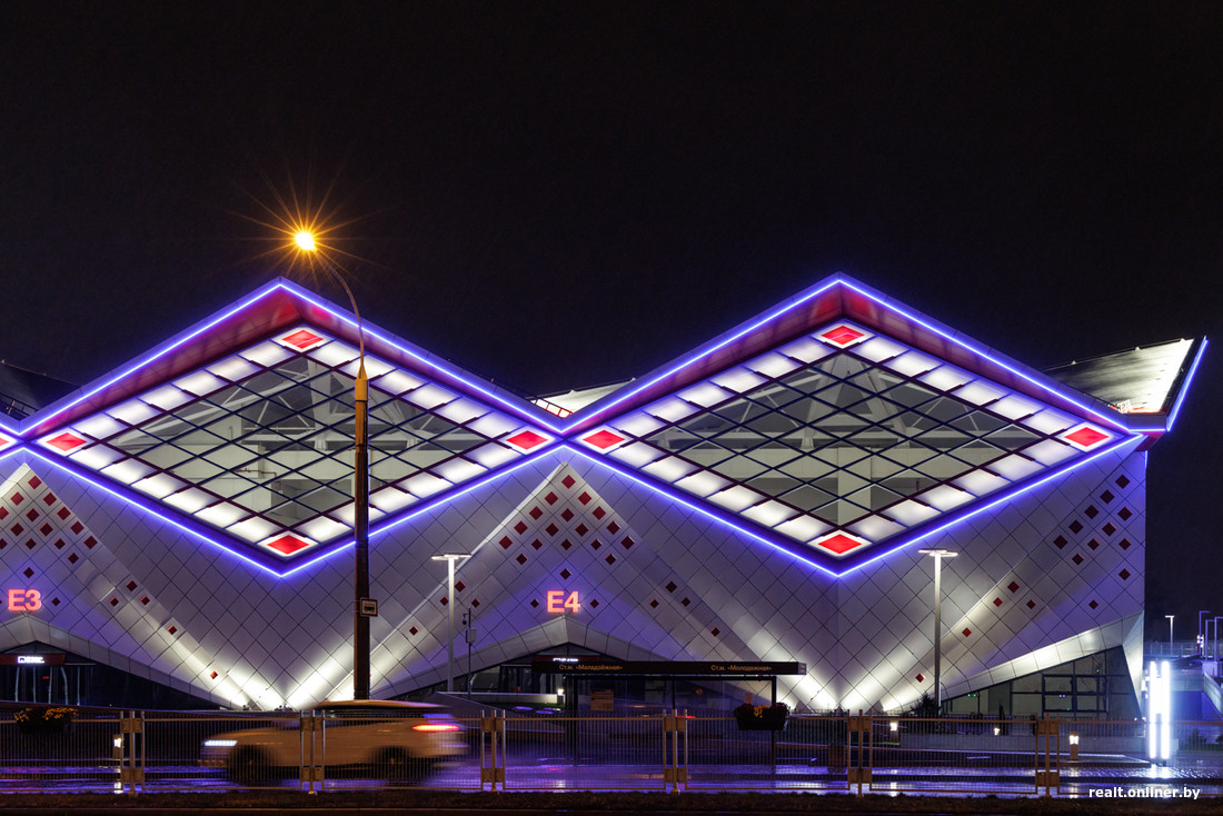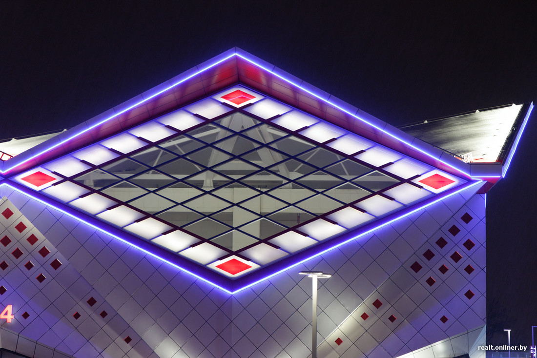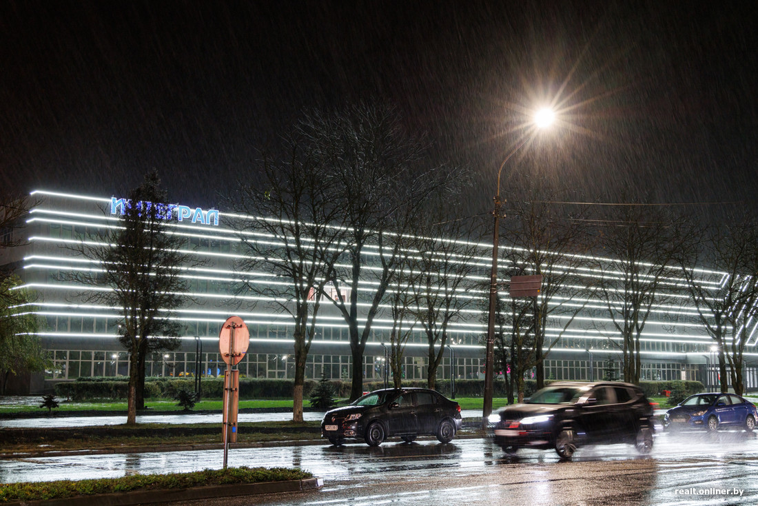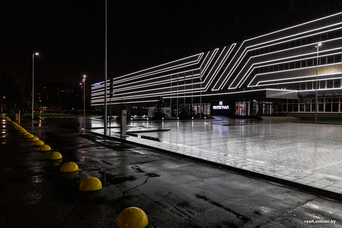 У здания «Белгазпромбанка», которое еще в 2015 году поразило нас своей художественной подсветкой, появились конкуренты. Один — вполне очевидный, второй — совершенно неожиданный. С последнего и начнем. Речь идет о здании завода «Интеграл». Вытянутый корпус, расположенный на улице Казинца, до недавнего времени не представлял для горожан никакого интереса: обычные, еще советские стены кирпично-белого цвета. Но этой осенью все изменилось.