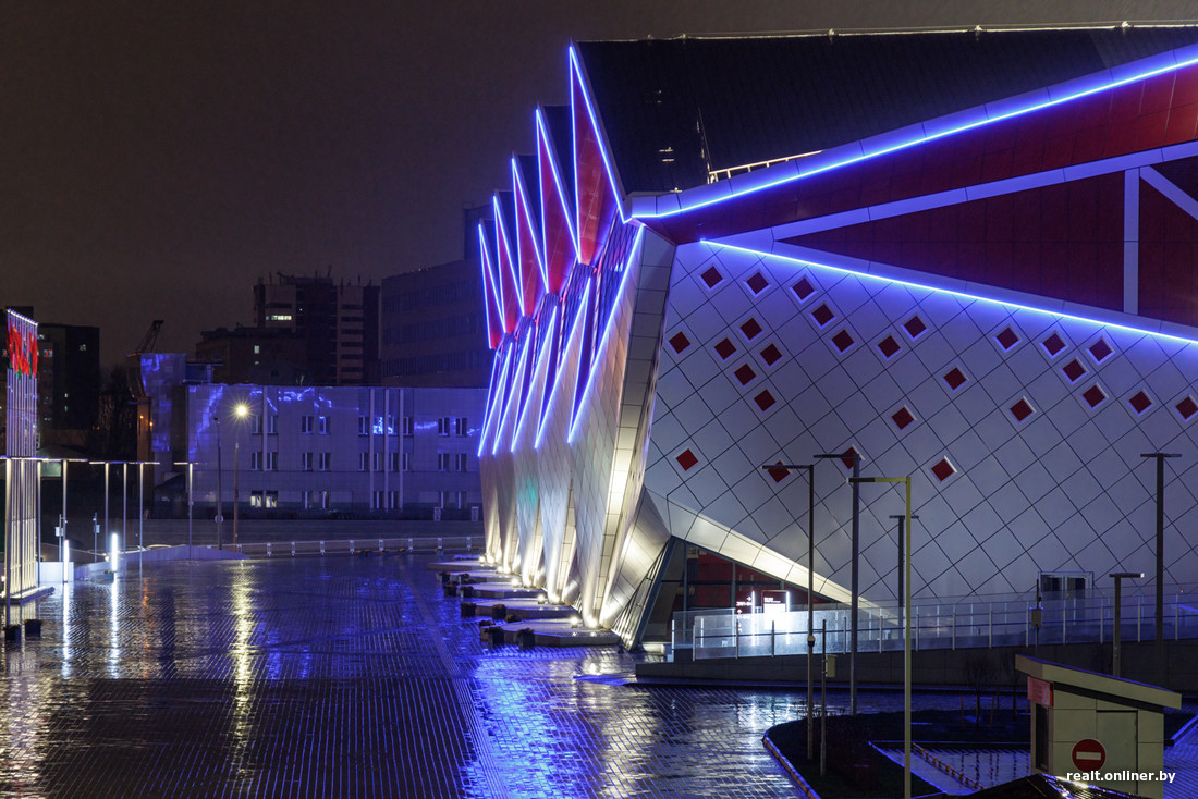 Второй объект, которому досталась оригинальная подсветка, — новый бассейн на Кальварийской. Официально он был открыт в начале этого месяца, однако принимать посетителей начнет, насколько нам известно, не раньше января следующего года.