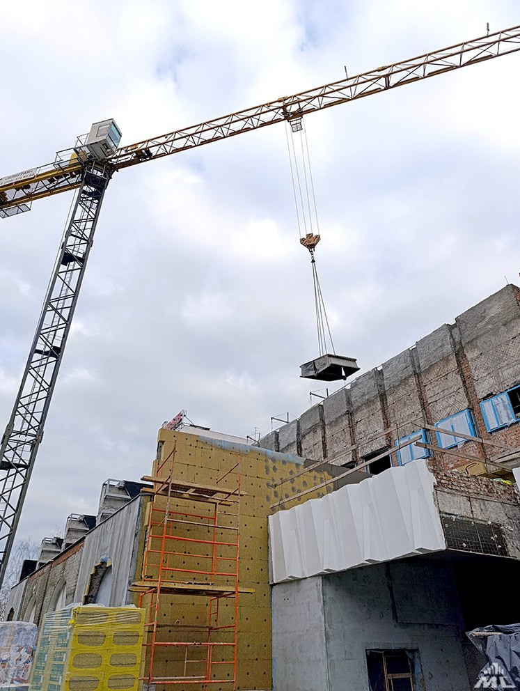 — Внутри здания завершено усиление всех конструкций, выполнены кладочные работы и перепланировка помещений. Подходит к концу установка приборов отопления. Началась установка дверных блоков и монтаж каркасов под витражи.