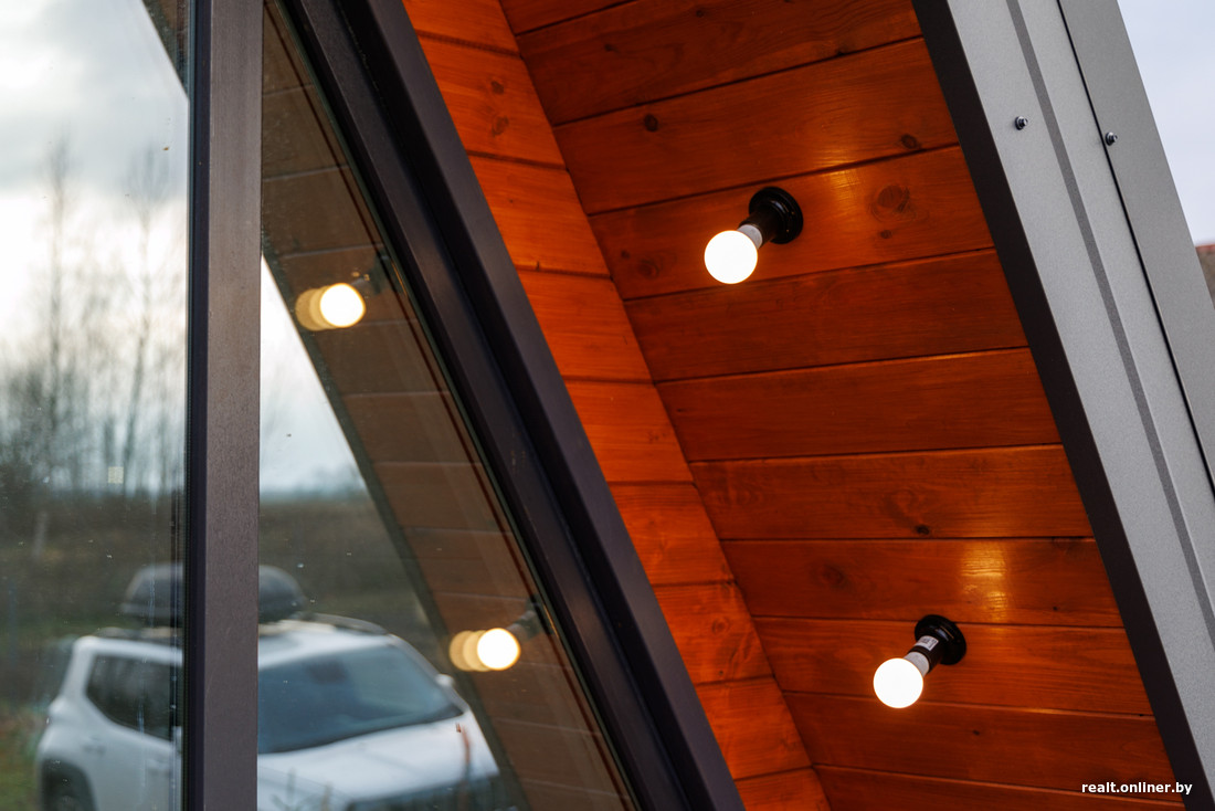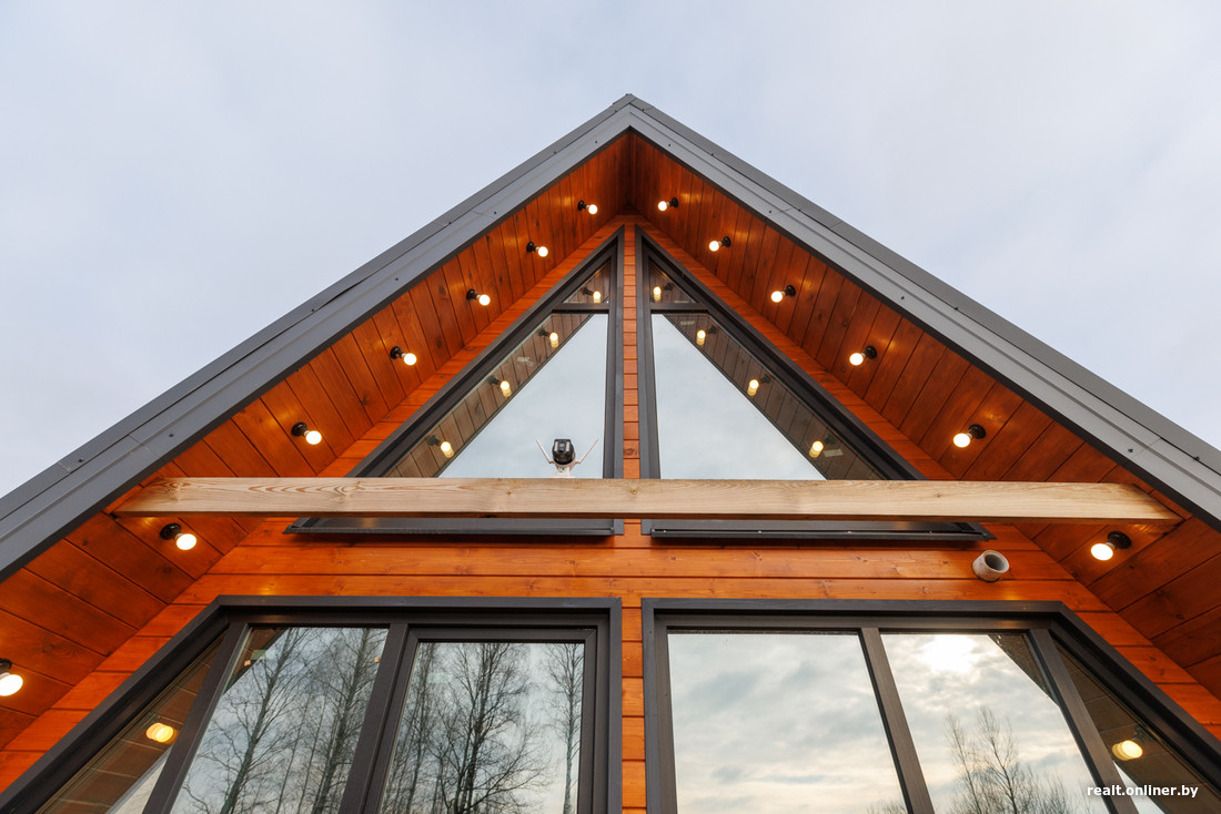 — У нас не классическая для этого стиля архитектура. Это A-frame с аттиковой стеной, то есть немного приподнятый. Это дает дополнительное пространство. Стандартно делают 6 на 6 метров, у нас — 6 на 8. Получилось 48 «квадратов» внутри плюс терраса на 20.