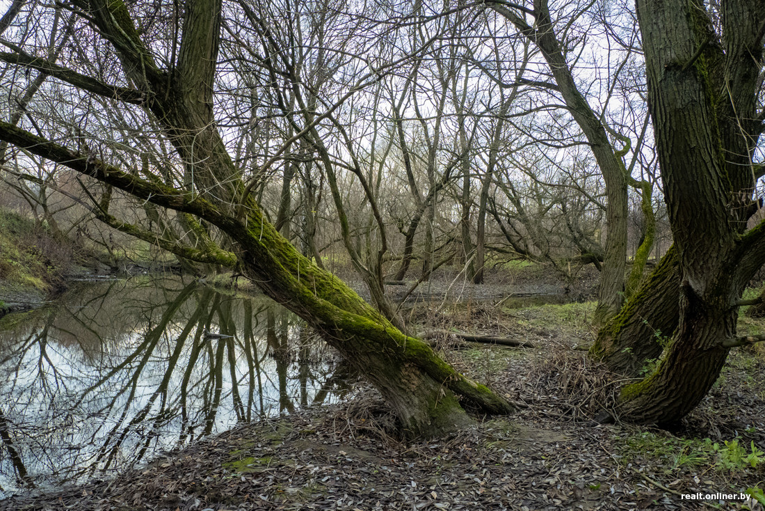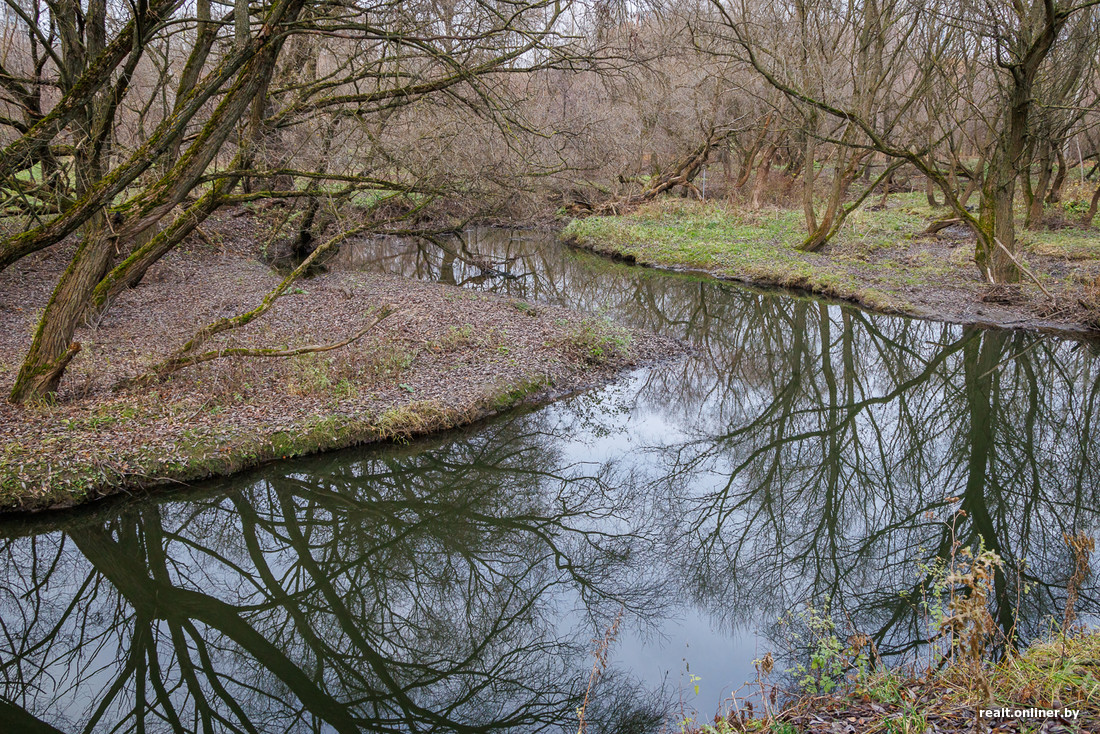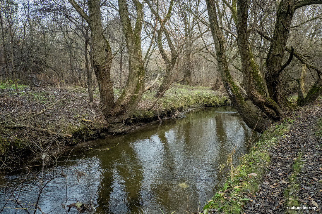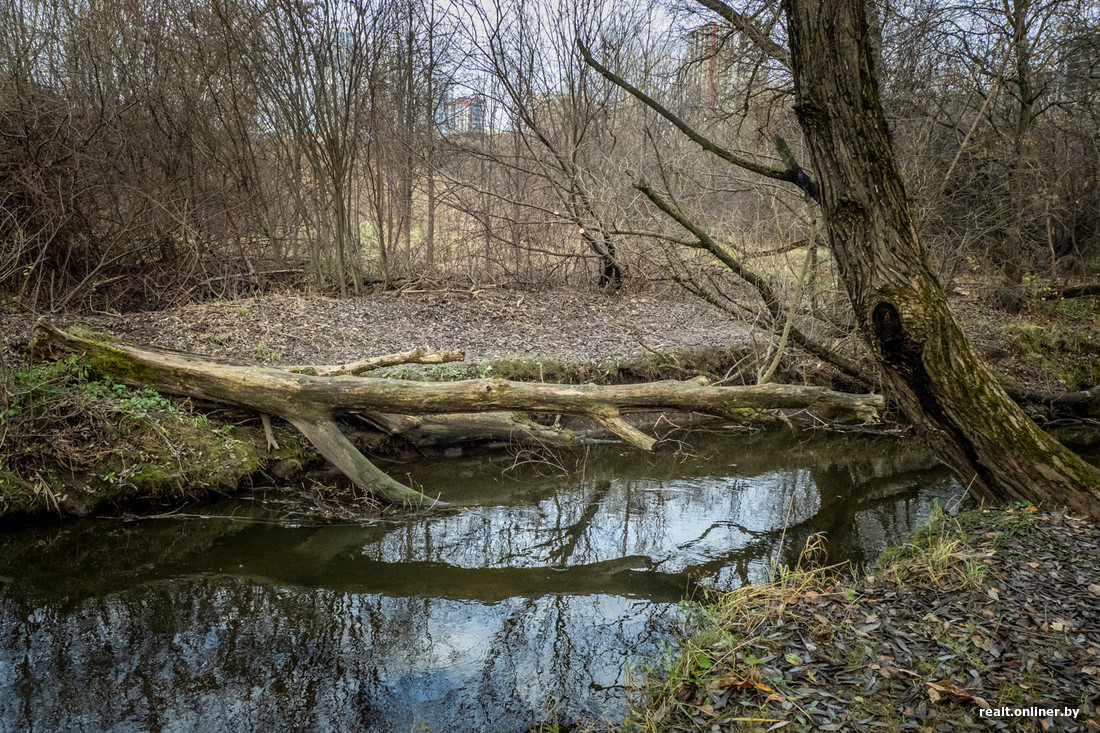 И все же часть идей удалось реализовать. Шикарный Лошицкий парк, Курасовщинский парк с «Белой дачей» — это все оттуда. Но мы из мест приятных и окультуренных переносимся туда, где пока не ступала нога градостроителя. Сегодня изучим отрезок зеленой зоны, расположенный прямо за «Минск-Миром». Тянется он примерно от улицы Кижеватова до Южной магистрали. Пойдем же вслед за тоненькой лентой красавицы-Лошицы, которую не могут остановить ни естественные преграды, ни рукотворные (в виде непонятно откуда взявшихся труб).