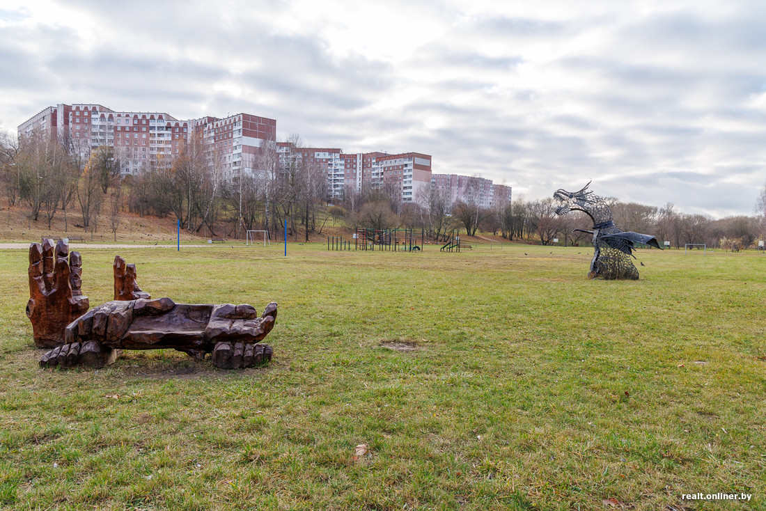 А как быть пока? Ездить в давно обустроенные парки или проводить время в «Долине сказок». Современную зону отдыха со скульптурами, лавочками и различными площадками оборудовали на улице Асаналиева летом 2022-го. Это, конечно, не ближний свет для жителей «Минск-Мира» (особенно тех, кто купил квартиры возле здания старого аэропорта), но все же альтернатива городским бетонным джунглям.