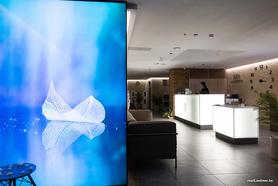В стоимость проживания входит и посещение СПА-центра (но вообще прийти сюда может любой желающий), внешний вид и наполнение которого очень даже достойные: тут есть 16-метровый бассейн, галерея бань и саун (от финской до хаммама), соляная комната, душ впечатлений… Но главное даже не это, а цена (минчане, лучше присядьте, особенно если хоть раз бывали в Spa Riviera). Безлимит на весь день стоит всего 65 рублей в будни и 85 — в выходные. Да, теперь вы знаете, куда можно отправиться на спа-weekend…