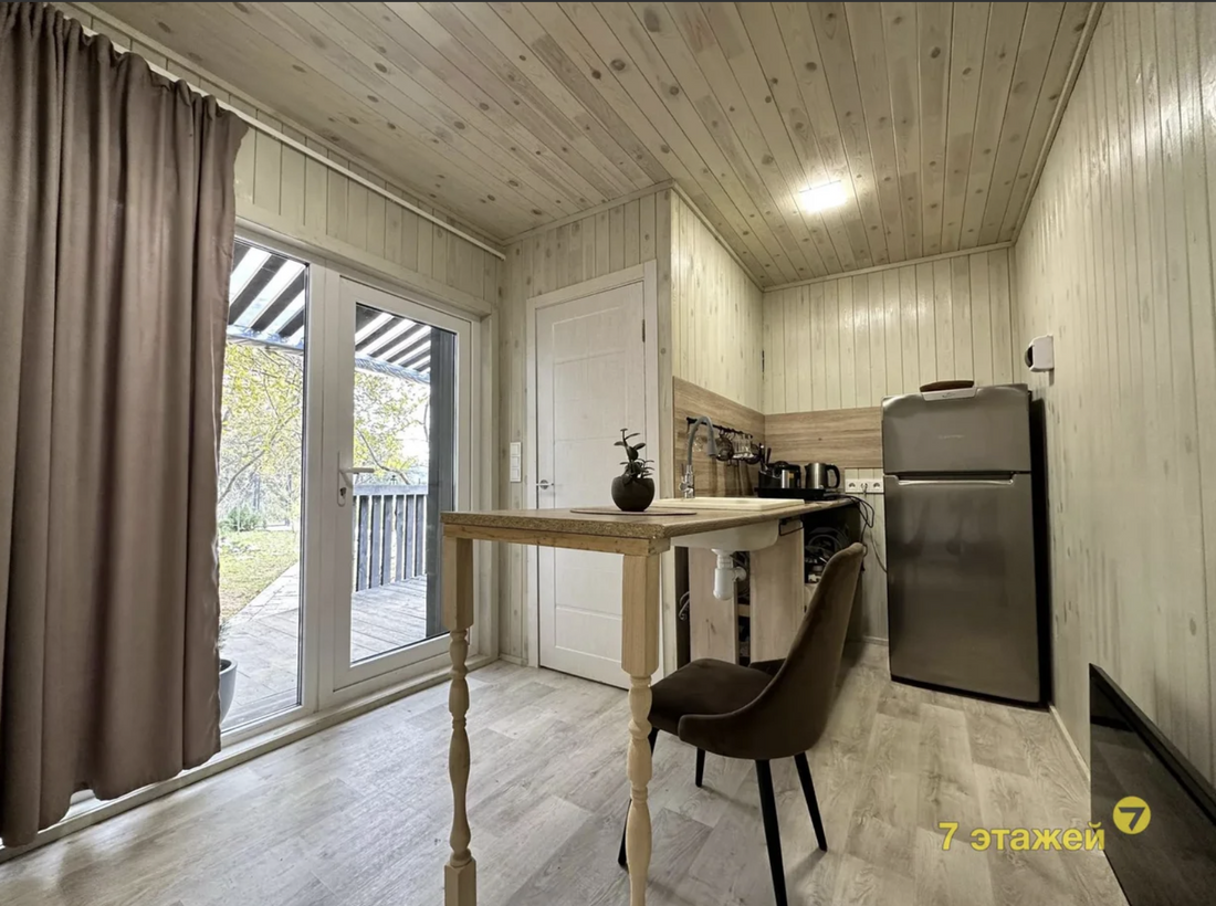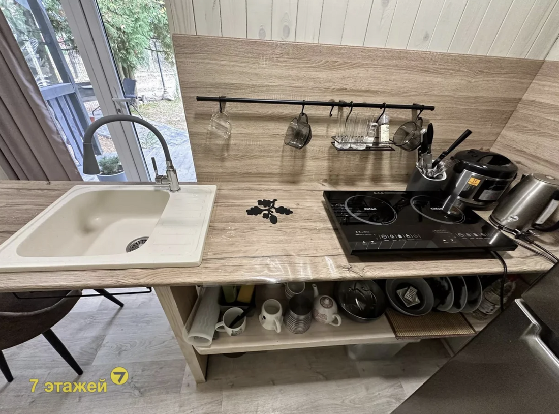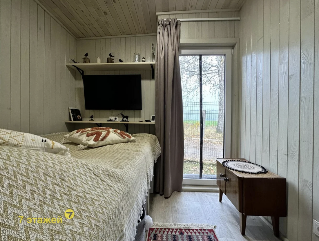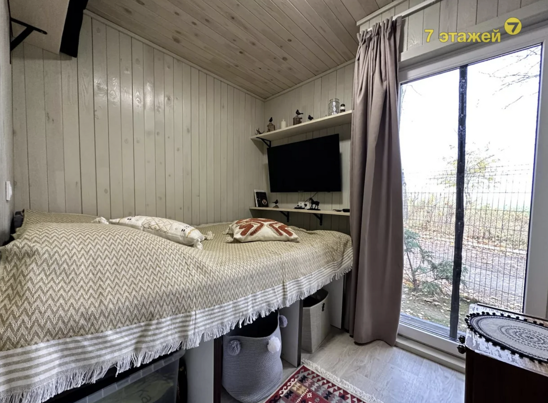 Дом новый, его построили в 2024 году. Его общая площадь — 21 «квадрат», плюс почти такая же по размеру терраса в 18 метров. Изначально нынешние владельцы рассматривали жилье как временный вариант: огороженный 3Д-панелями участок в 6 соток вполне позволяет построить здесь еще один полноценный дом.