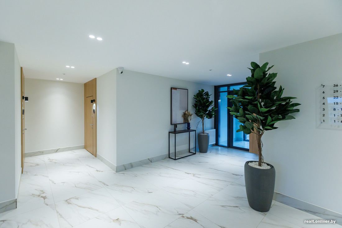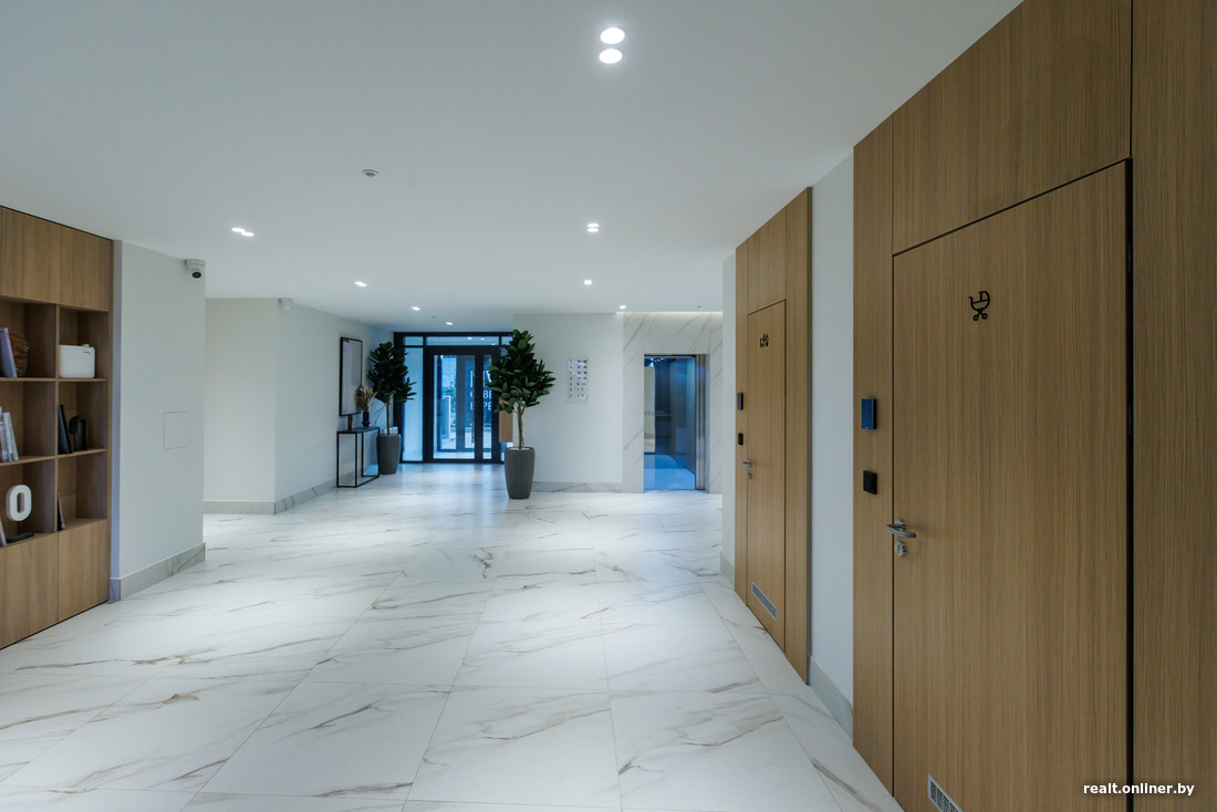 Если верить застройщику, лифты в новостройках бесшумные, с порталами из широкоформатного керамогранита. Квартиры будут без отделки, с алюминиевым шумоизолирующим остеклением, металлическими дверями с отделкой HPL-панелями, улучшенного штукатуркой и стяжкой.