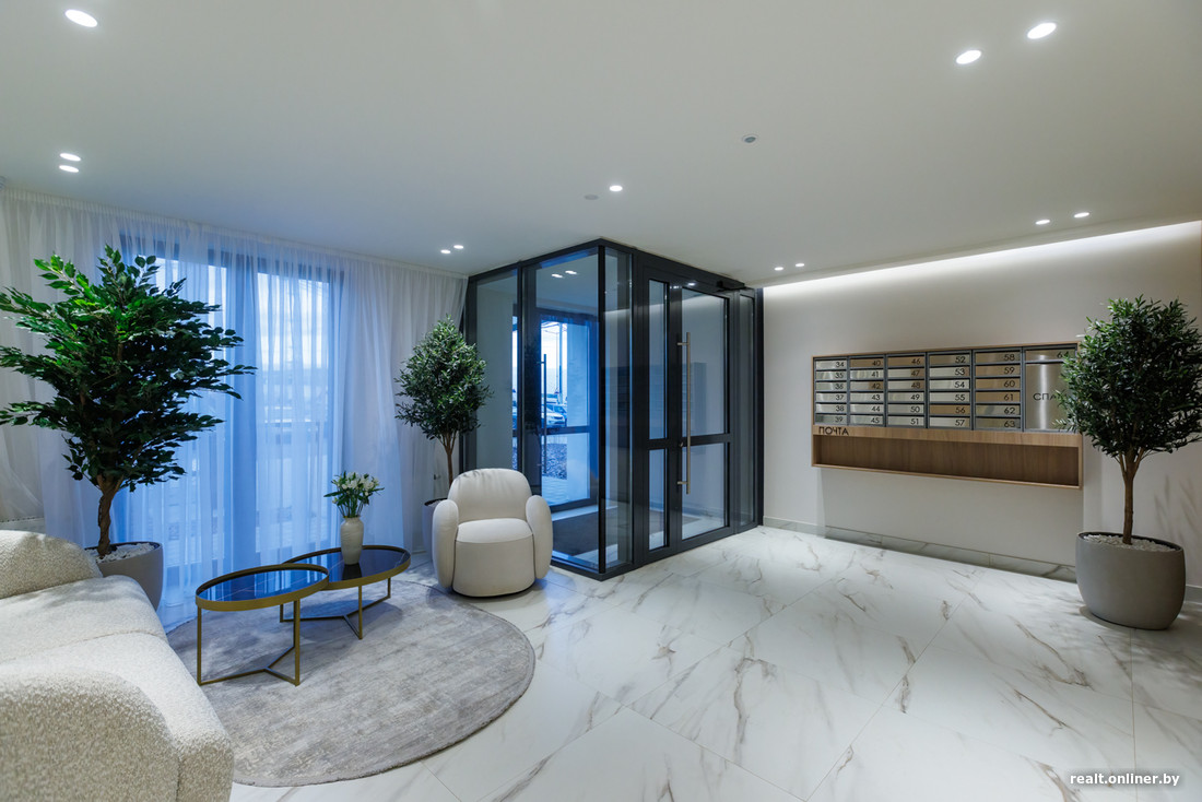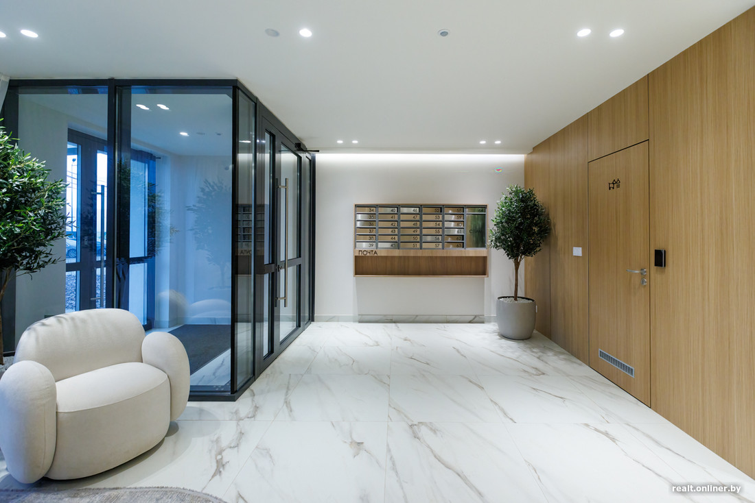 Снаружи и внутри они схожи: в двух новостройках панорамное остекление, современные фасады с декоративной штукатуркой, имитирующей клинкерный кирпич, полностью меблированное лобби и уютные холлы с элементами декора.