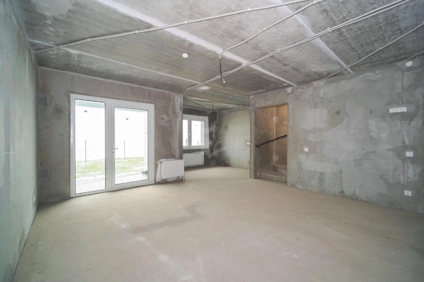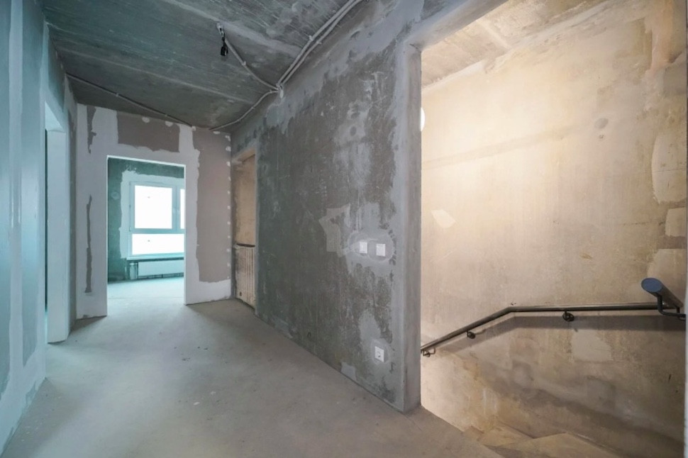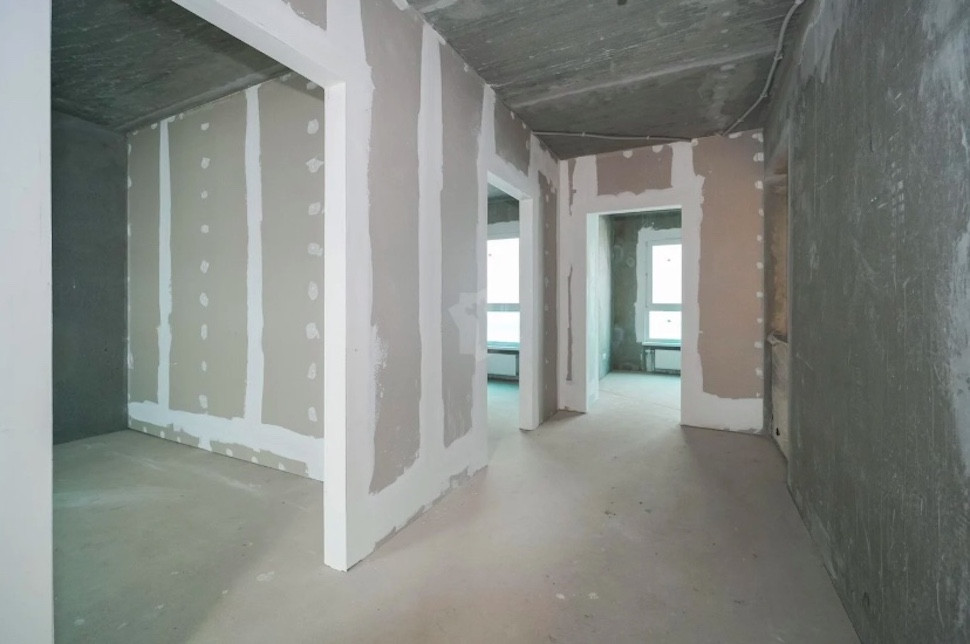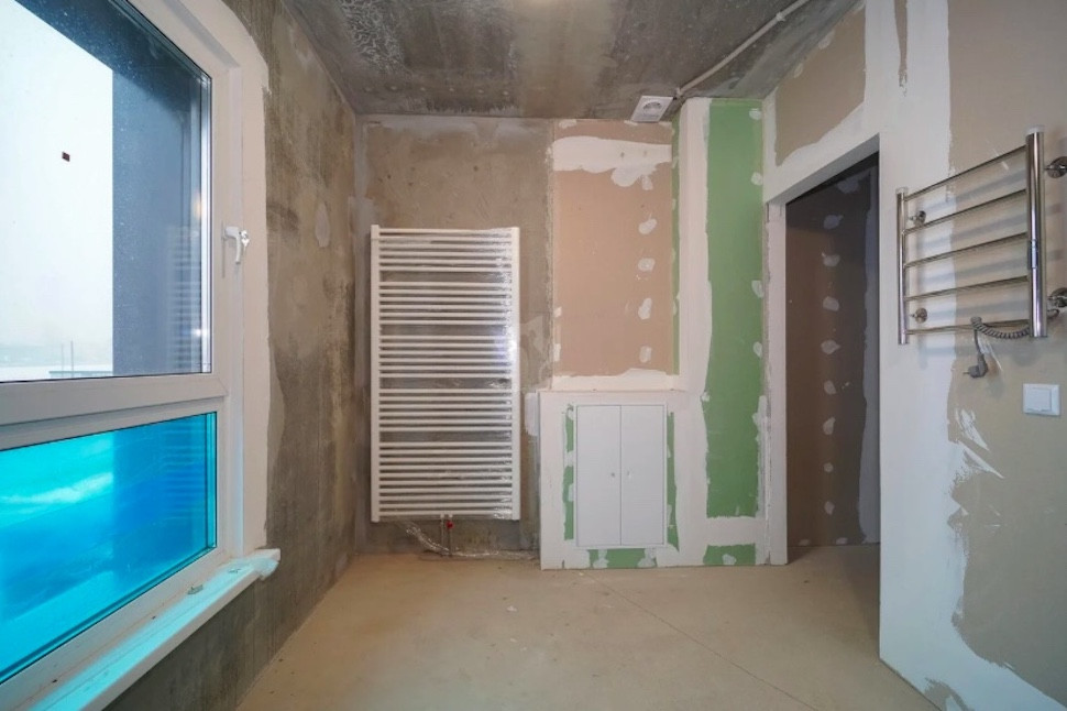 Квартира в черновой отделке, никаких признаков ремонта. Жилье проверил специалист-приемщик: соответствующие пометки можно увидеть на окнах и фасаде. Судя по всему, метры торцевые — с одной из сторон соседей не будет. Что не может не радовать.