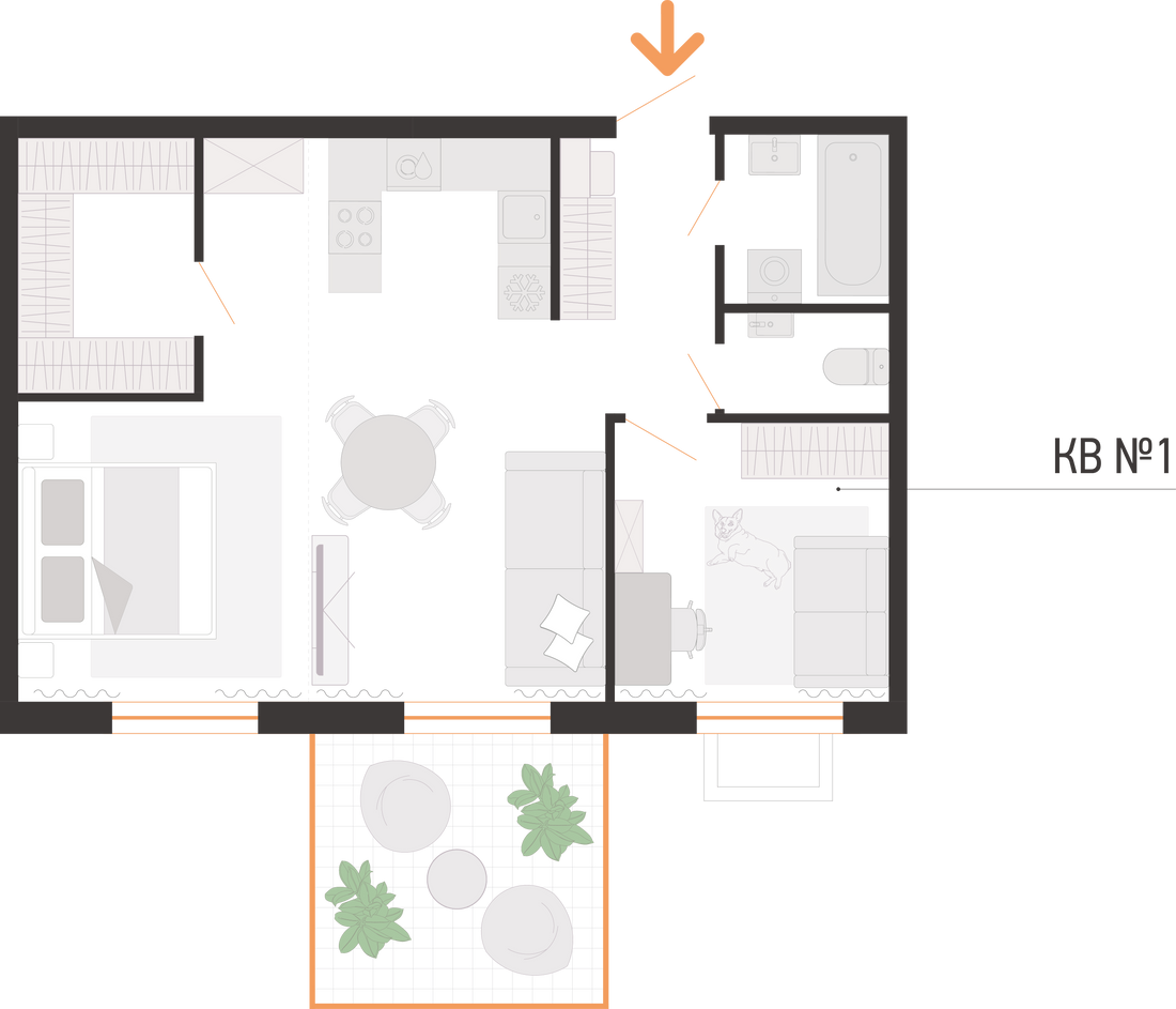 Интерьеры подъездов будут оформлены под стать фасадам — в стиле модернизма. На входах установят атмосферные неоновые светильники произвольной формы. Все подъезды в доме будут проходными и обустроены с учетом требований безбарьерной среды. Как и в других домах «Новой Боровой», здесь предусмотрены колясочные и лапомойки на первых этажах.