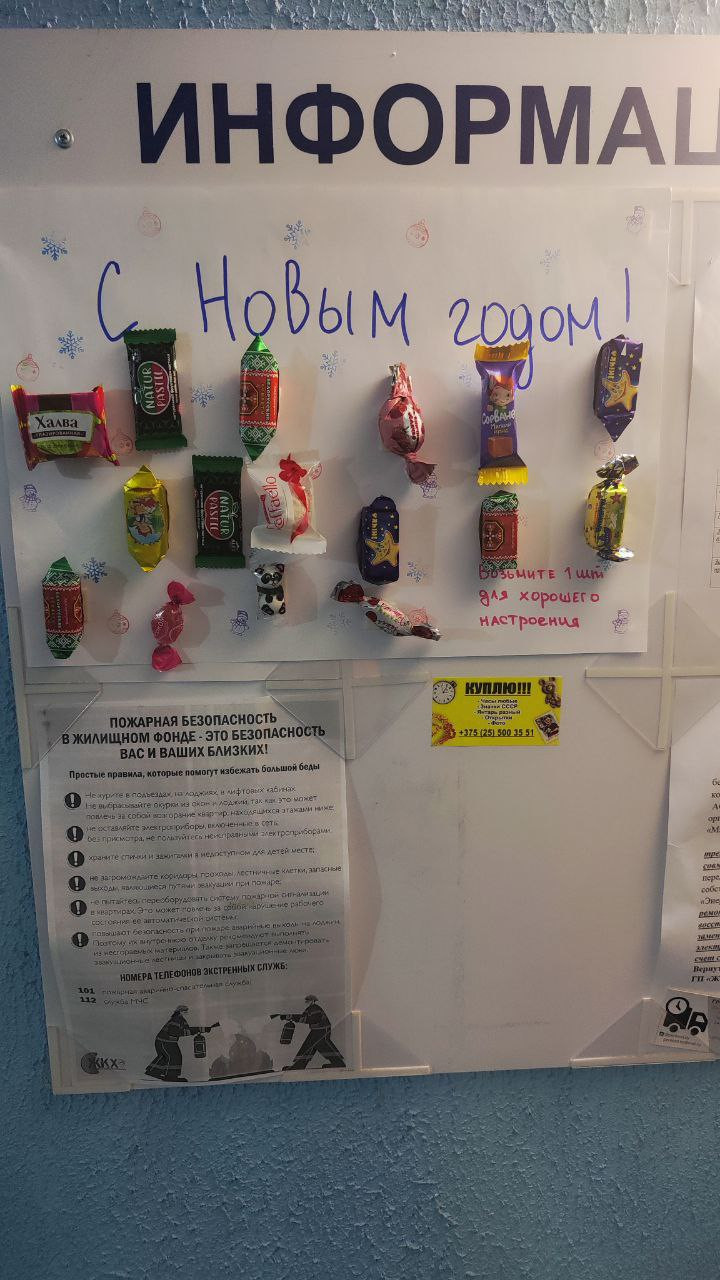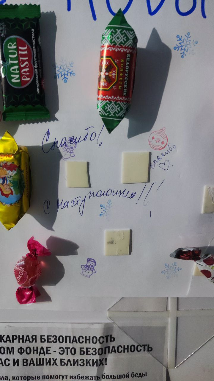Также девушка повесила в подъезде плакат с поздравлениями и конфетами. Конфетки, к слову, постепенно разбирают, а на их месте появляются слова благодарности неравнодушной соседке.