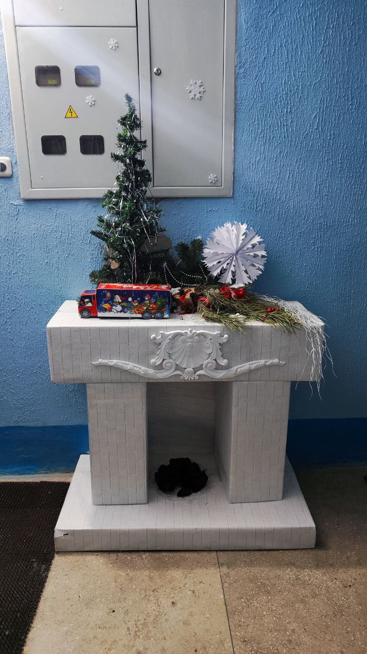 Душевно украсила свой подъезд и жительница дома, расположенного по улице Якуба Коласа, 67. «Подъезд у нас старый и грустный. Да еще дырка в стене есть. В прошлом году я устанавливала маленькую елочку и вешала снежинки. А в этом решила добавить чуть больше радости. Благо дома был декоративный камин — делала его раньше для одной выставки. Смастерила из картонных коробок и оклеила обоями. Он отлично вписался, а заодно прикрыл собой ужасную дырку в стене», — рассказывает минчанка.