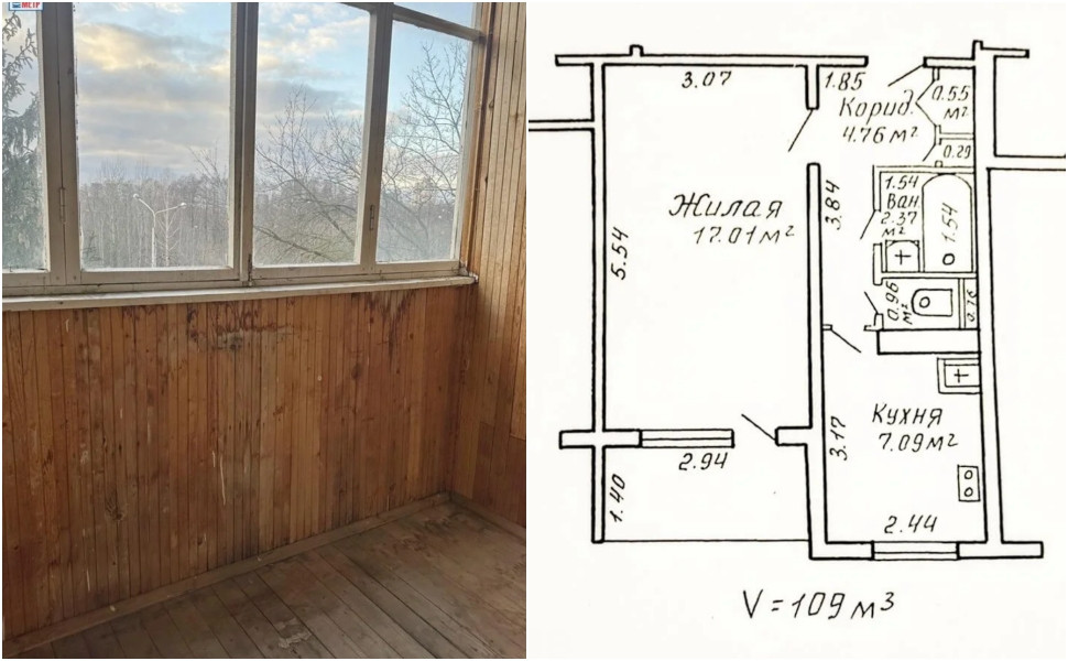 Первой в этом списке стала однушка в Серебрянке, на ул. Якубова, 66/1. Компактная однокомнатная квартира находится в девятиэтажном панельном доме на третьем этаже. Планировка в ней стандартная. Ремонта в однушке нет, зато есть застекленный и обшитый вагонкой балкон. Общая площадь квартиры всего 33 «квадрата», жилых из них — 17. Кухня заняла площадь в 7 метров: особо не разгуляешься, но вариант не самый худший. Если верить автору объявления, квартира продается впервые. Зарегистрированных в ней нет, поэтому при желании потенциальный покупатель сможет быстро выйти на сделку. Хозяева готовы расстаться с ней за $46 500.