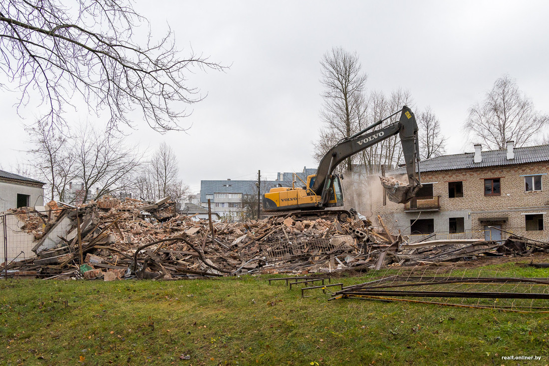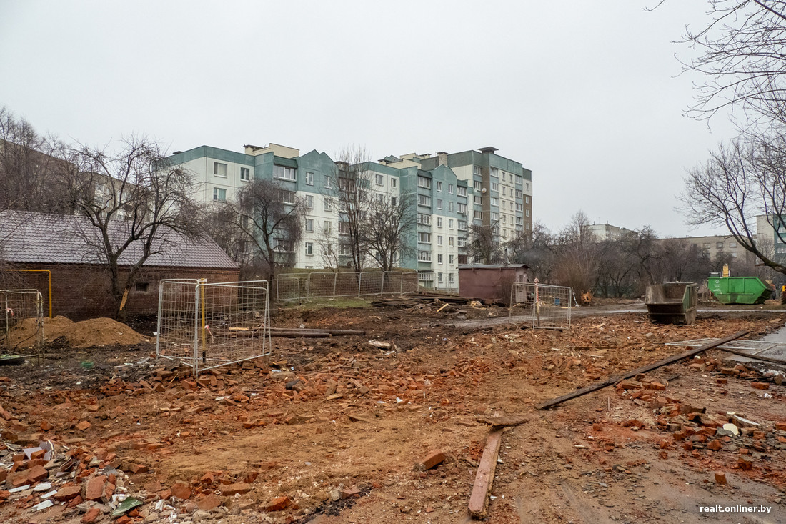 Пока на свободной площади рабочие взращивают первый дом и намечают второй (на 150 квартир), в другой части демонтажники борются со старыми постройками. Точнее, уже поборолись: дома №50, 58, 60 и 62, построенные в конце 1950-х — начале 1960-х, снесены. Следующая порция гектаров очищена. Так что очередникам есть на что рассчитывать: когда проект будет полностью реализован, Минск ждет «прирост» на 2413 квартир.