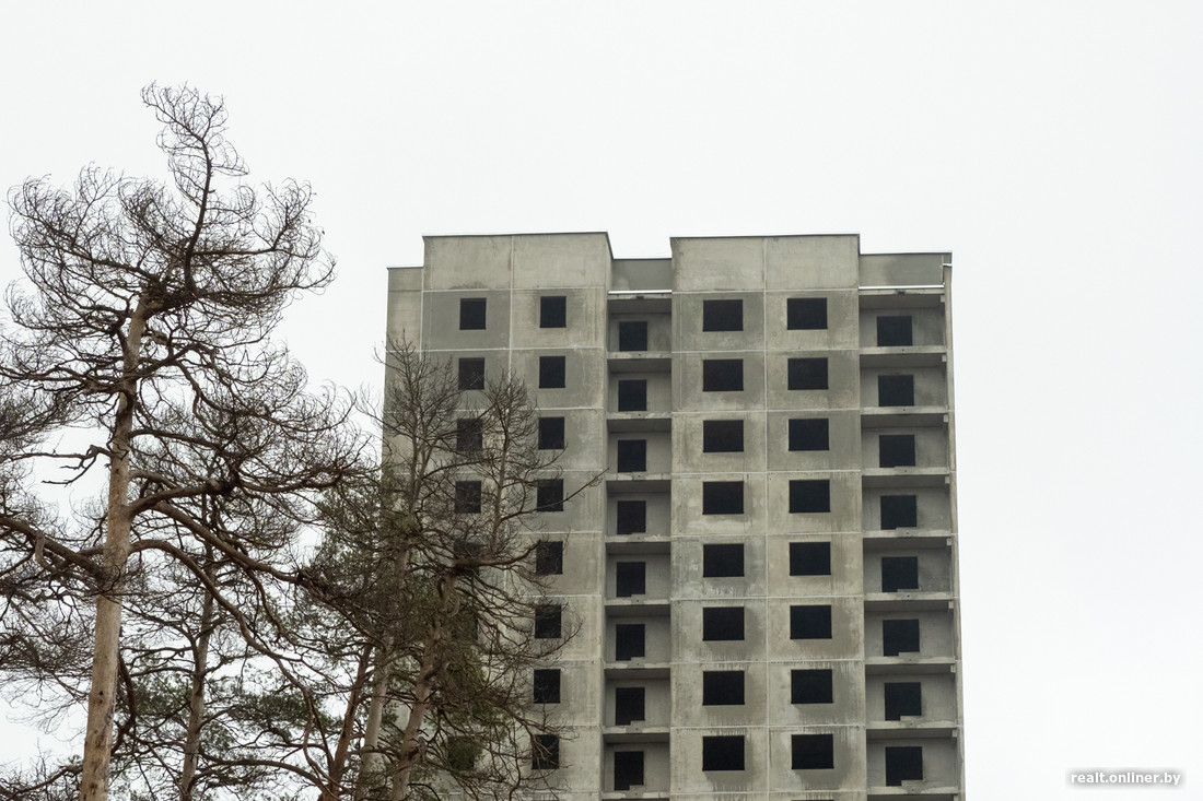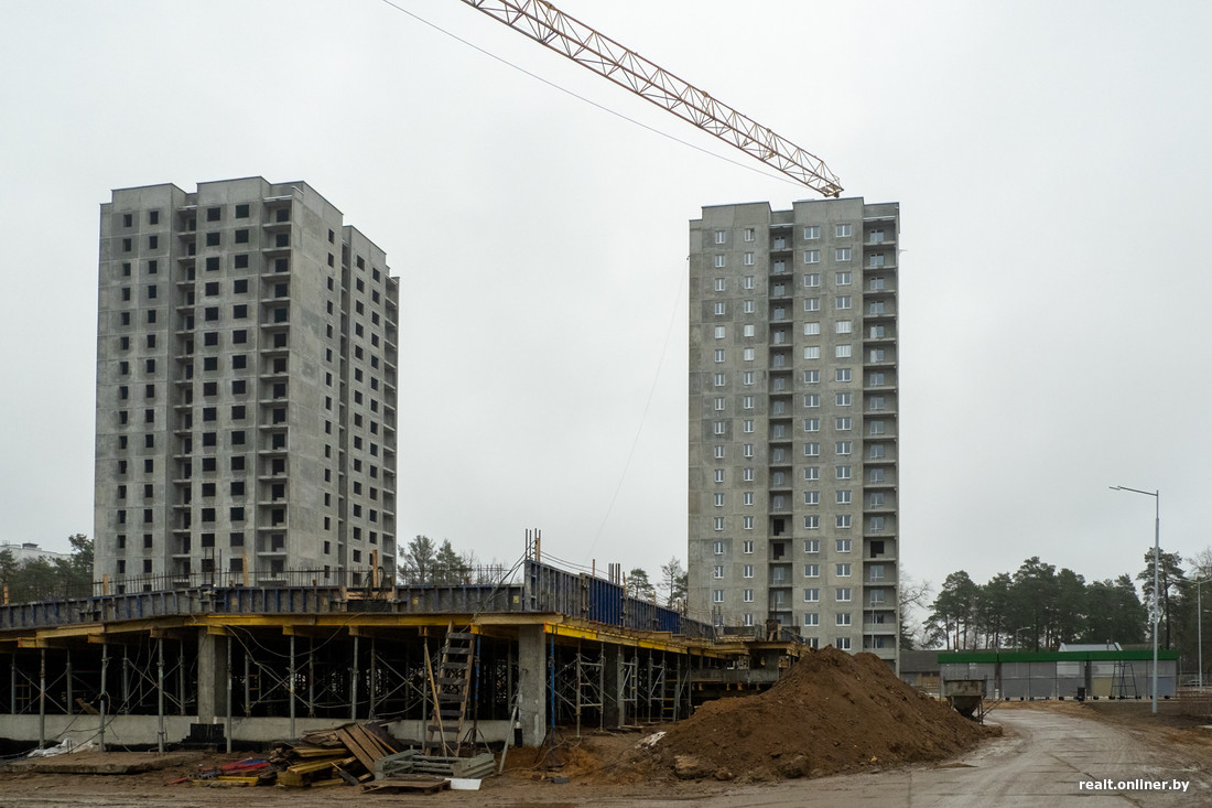 Выглядит довольно странно. Даже с учетом того, что осваивать приходится голое поле. Все-таки это панельные многоэтажки, а не индивидуальный и сложный проект. Причины такой задержки ни «Завод эффективных промышленных конструкций», ни «Минскстрой» не называют. Поэтому просто входим в положение и ждем, когда уже вырастут все обещанные дома. А задумали тут, на окраине Минска, нечто грандиозное: сразу десять 19-этажек на 1818 квартир. Все дома — «стены» на несколько подъездов. Объединяет высотки выбранный для них проект — 24-РС с современными (как обещают) планировками квартир: просторные жилые комнаты, большие кухни, два санузла. Места общего пользования тоже не по остаточному принципу проектировались: предусмотрены входы на уровне земли, прозрачные входные группы, красивые лобби.