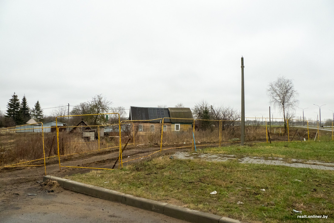 Участок непростой: прежде чем начать возводить дома, придется все расчистить — снести многочисленные и довольно основательные на вид постройки. Дело не одного дня и не одной тысячи рублей. Но есть и плюс: будущая стройплощадка уже огорожена капитальным забором, тратиться на это не придется.