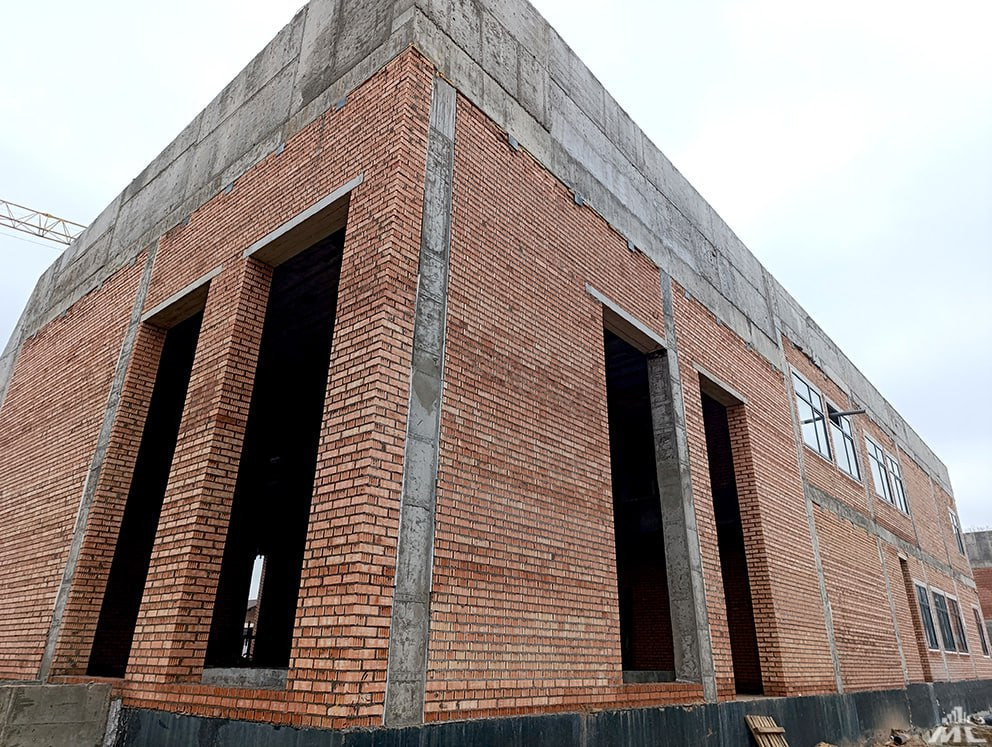 К будущему ФОКу уже подведена теплотрасса. Как только кладочные работы завершатся, в здание подадут тепло, отделочники приступят к своей работе.