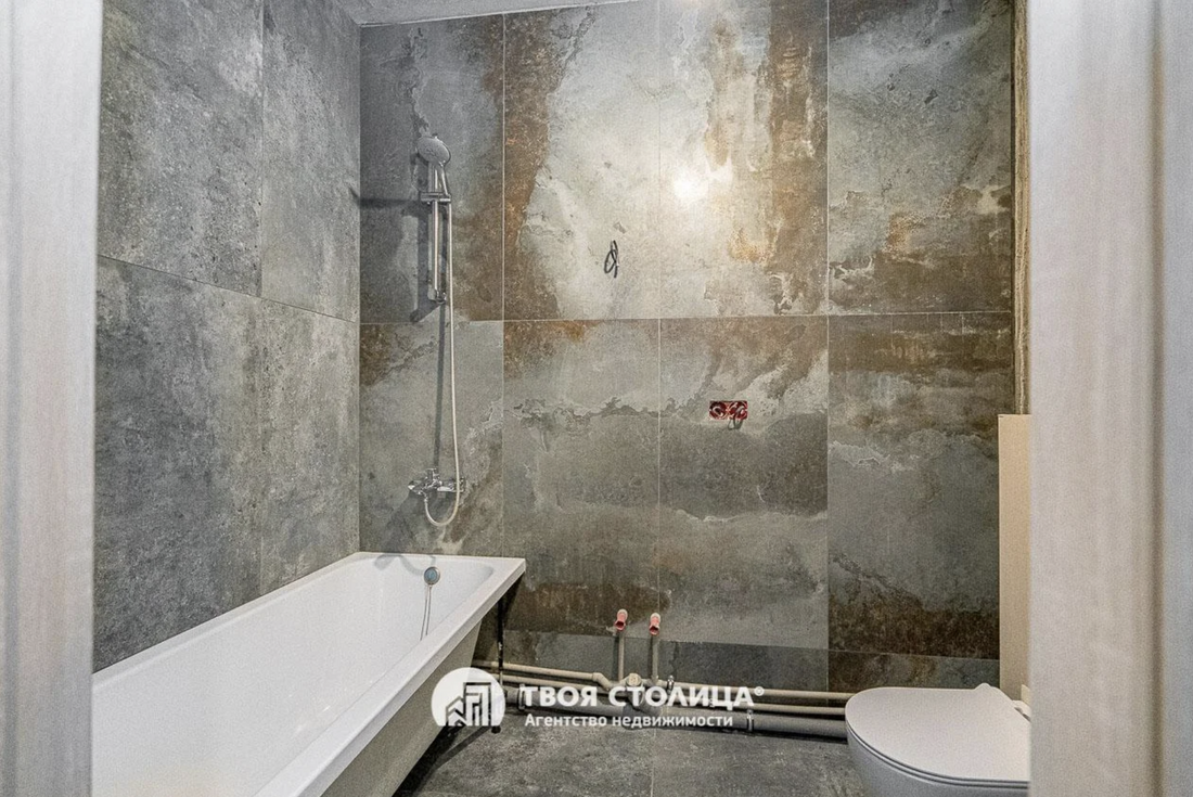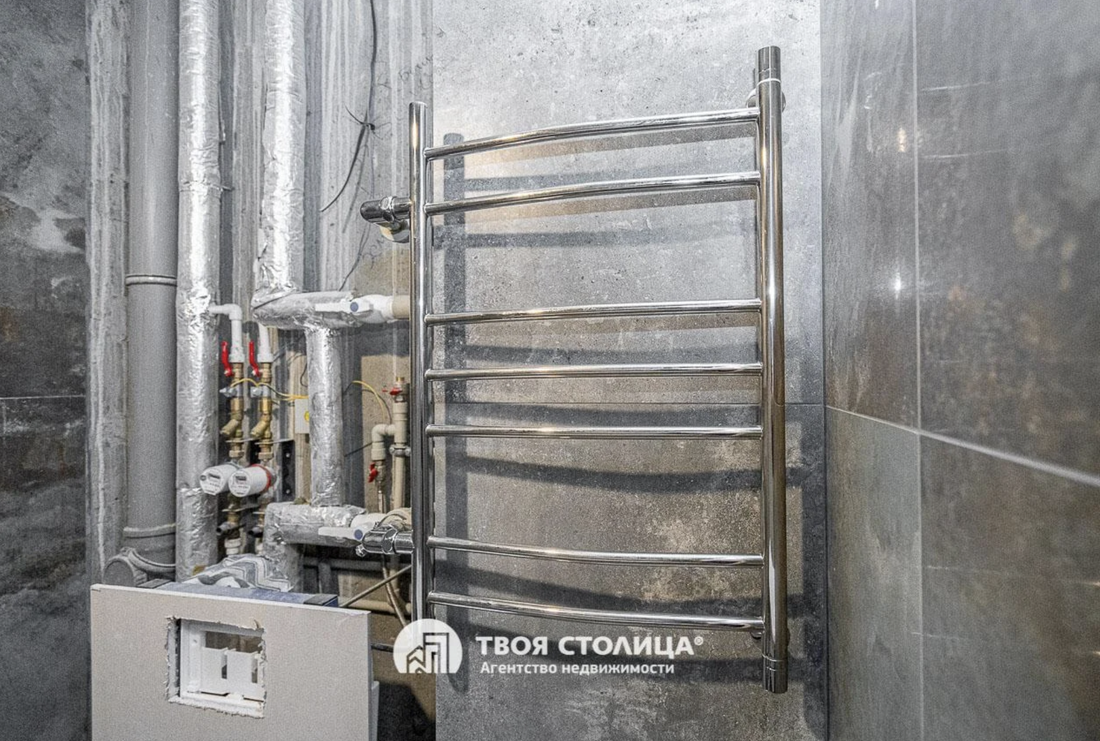 Владелец провел в жилье все нужные коммуникации, сделал разводку электрики, установил розетки, частично уложил плитку, отделил санузел. Последний, к слову, выглядит практически завершенным, осталось добавить пару штрихов.