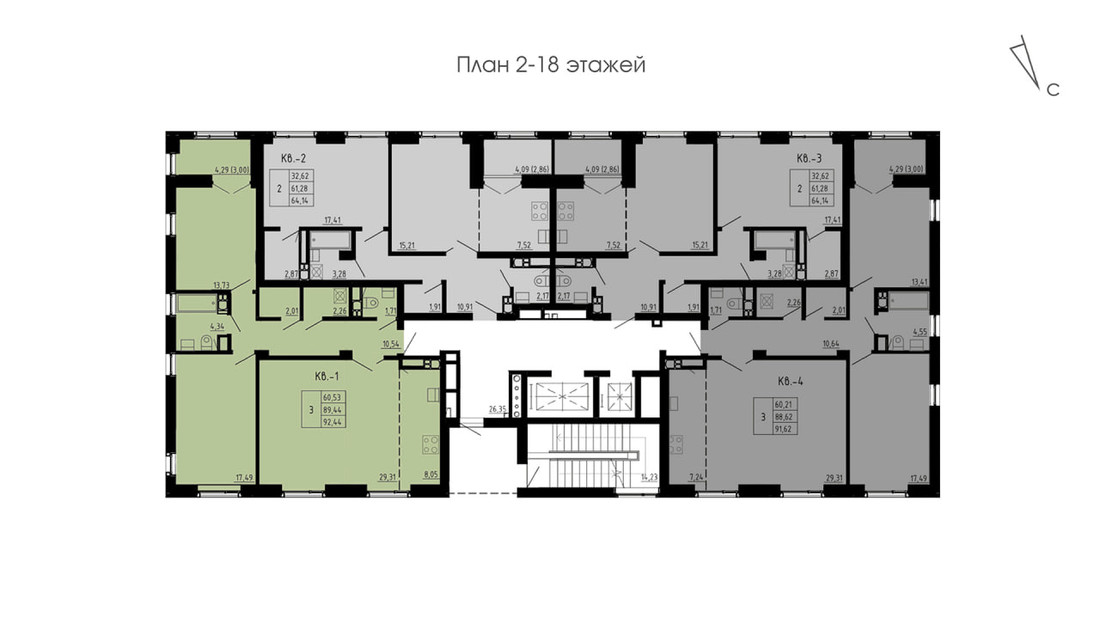 Застройщик предложил всем желающим 29 квартир, которые разбросаны со 2-го по 18-й этаж: