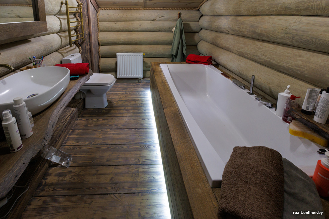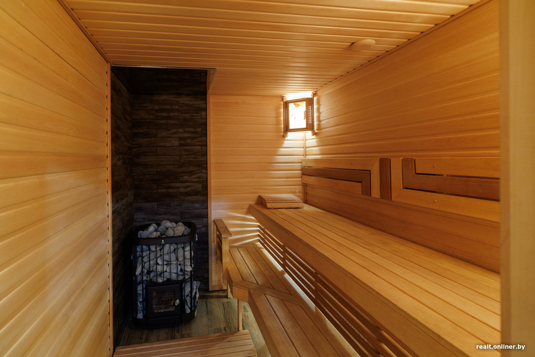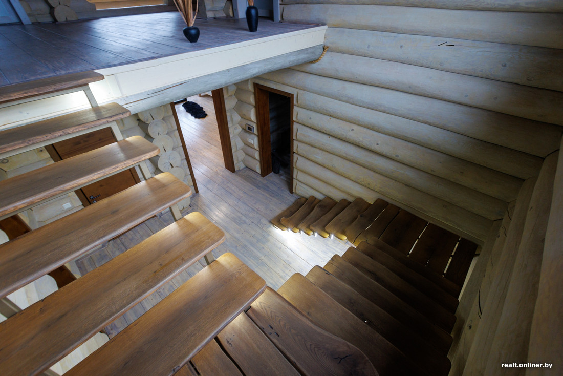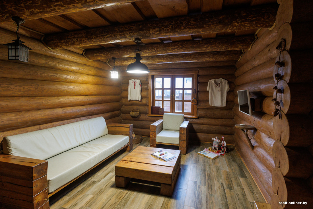 — Сауна на дровах, есть душевая и комната отдыха. На втором этаже мы поставили большую сосновую кровать. Если приезжают гости, располагаем их там.