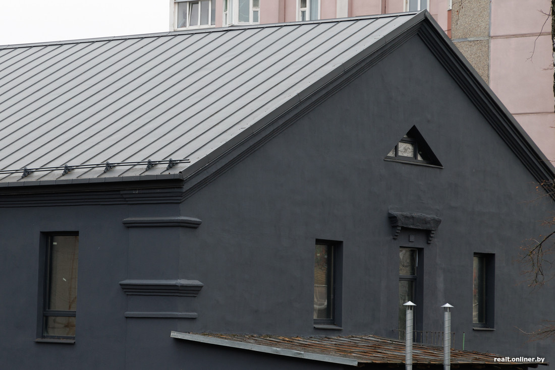 «Красишь послевоенную двухэтажку в черный, дорубаешь окна, чтобы были вытянуты, — вот тебе модный лофт», — написал в своем блоге краевед Денис Блищ еще в конце ноября 2024-го. Onlíner посмотрел, как преобразилось здание, и узнал, что будет внутри.