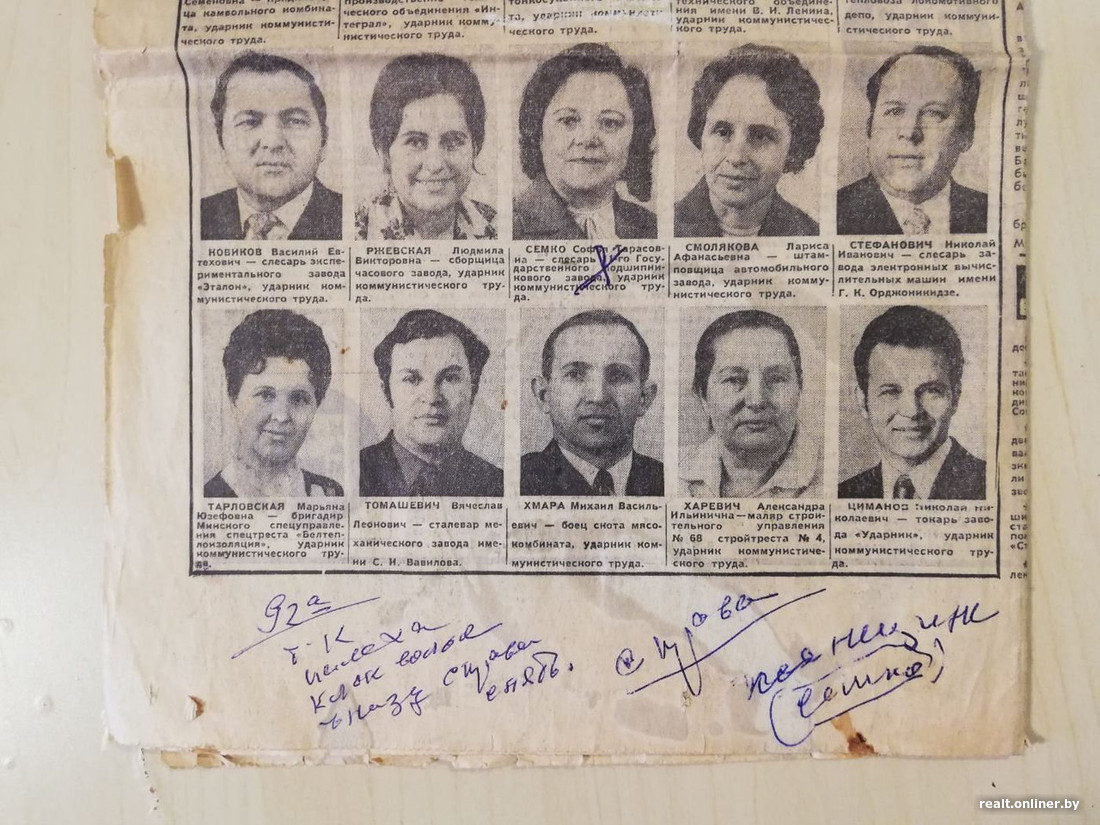 Интересный и полезный артефакт в том же чемодане — номер «Вечернего Минска» за 6 мая 1974 года. Благодаря пожелтевшей от времени газете известно имя той самой женщины с большого портрета — Софья Тарасовна Семко.