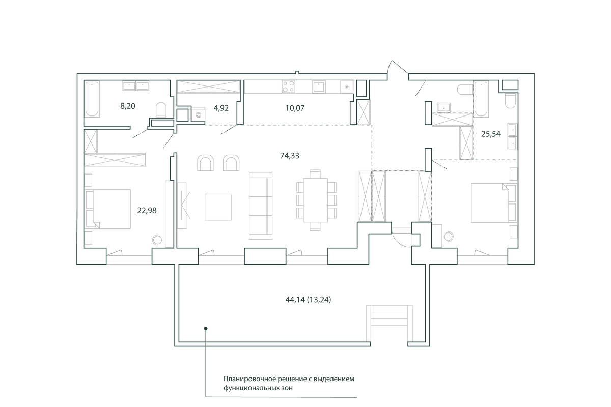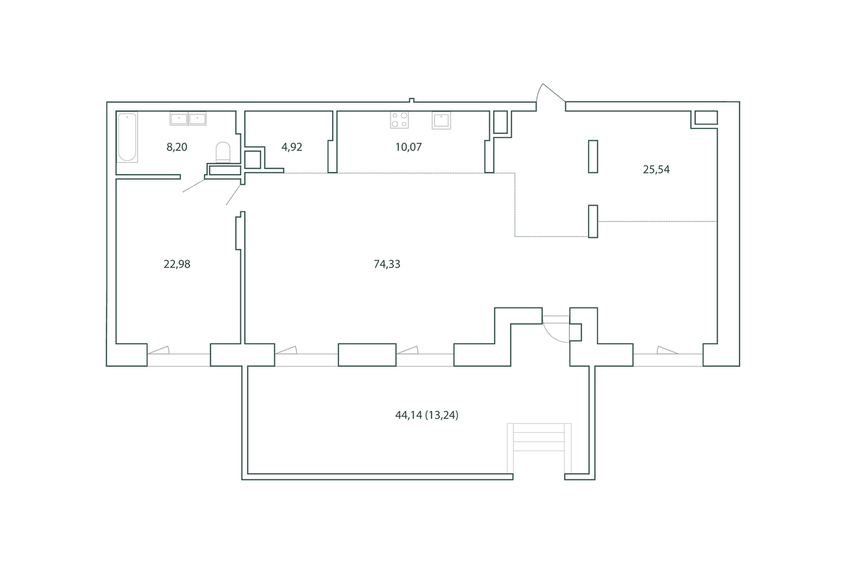 Все квартиры в Tatra 1 продаются без отделки, с минимальным количеством перегородок. Кроме этого, для жильцов в доме предусмотрены кладовые.