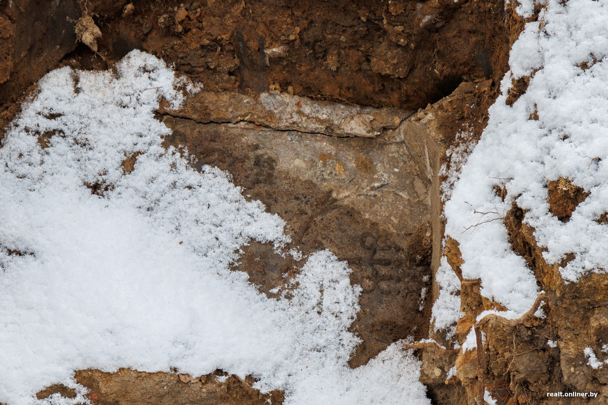 Уникальные элементы надгробий обнаружил в центре Минска один из наших читателей. На месте раскопок, кроме каменных и кирпичных артефактов, он заметил кости. Их, по его мнению, вероятно, забрали на экспертизу.