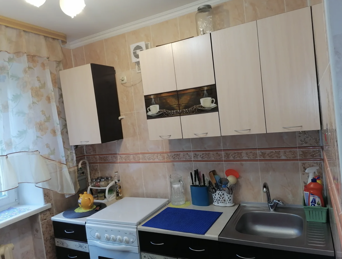 Хозяева оставляют новым владельцам встроенный шкаф, кухонный гарнитур, газовую плиту и холодильник. Заехать в квартиру вы сможете сразу после того, как получите ключи на руки.