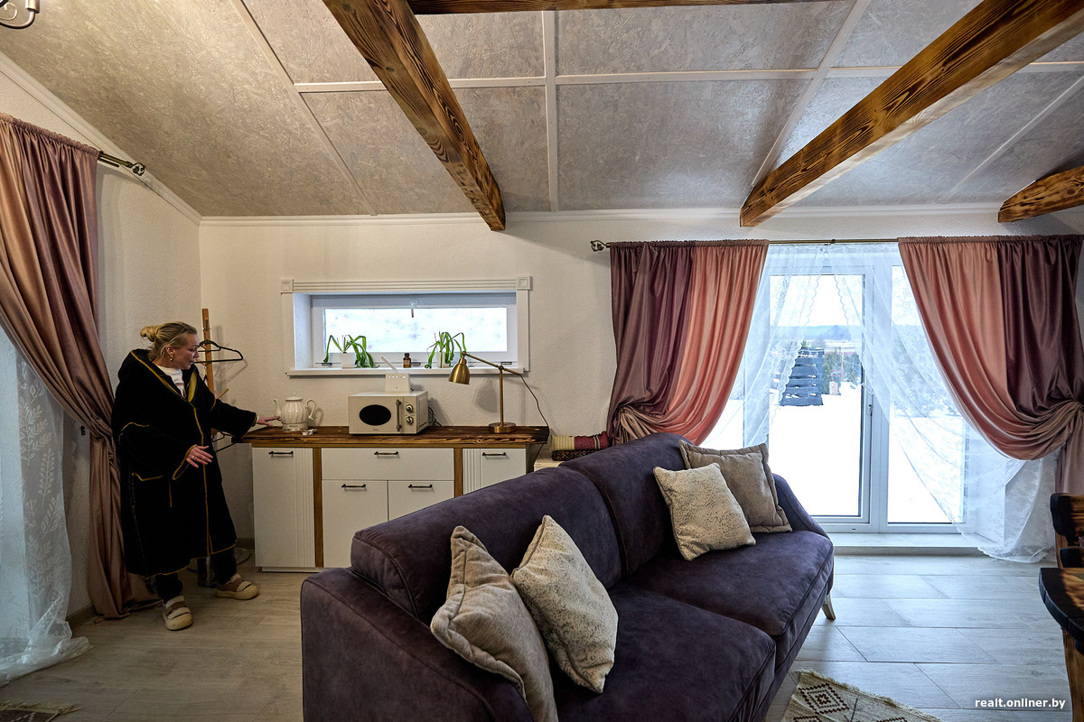 По словам Юлии, как только часть бывшей конюшни обрела жилой вид, супруги задумались над гостевыми комнатами. Говорят, у них много друзей из России, которые с удовольствием приезжают в Беларусь, чтобы отдохнуть и полюбоваться местными видами.