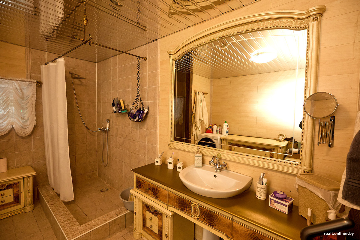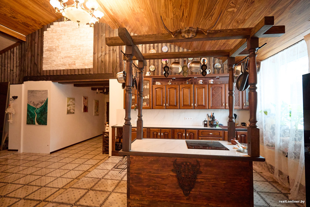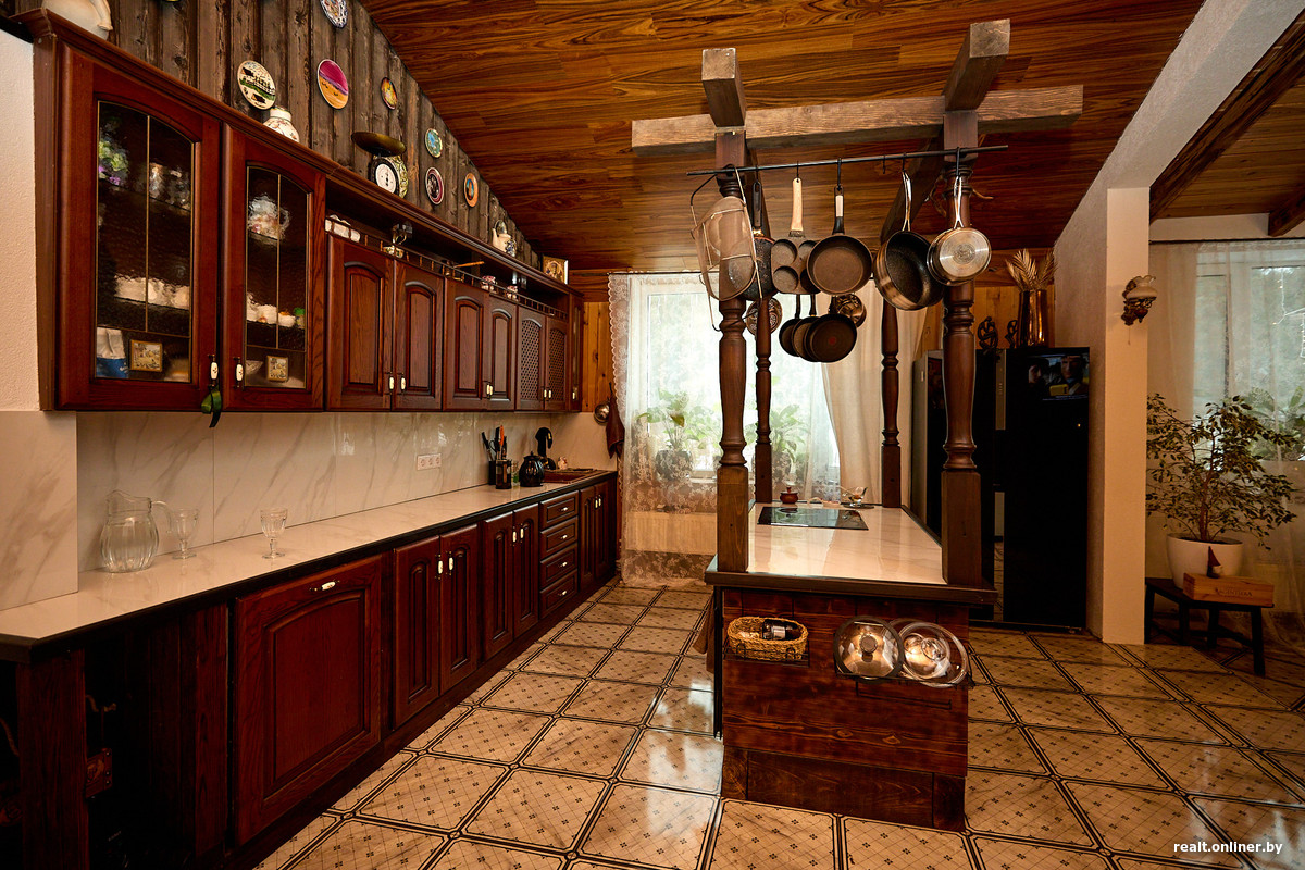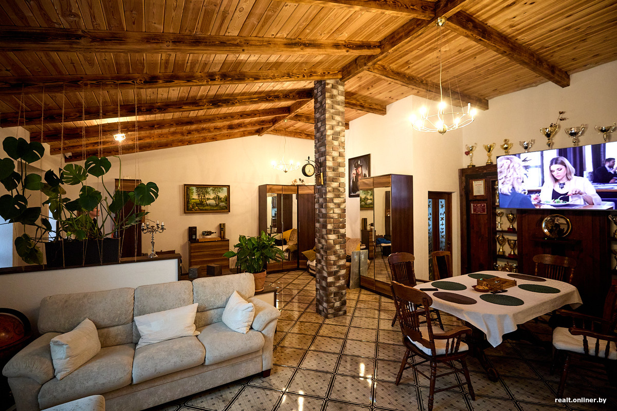 — В оформлении комнат мы старались использовать только натуральные материалы, — продолжает дочь Настя. — Доски и бревна от конюшни не выбрасывали: реставрировали, чистили и красили. Многие из них стали частью интерьера гостевых комнат. Все стройматериалы и мебель — белорусского производства. На некоторых из них удалось сэкономить, потому что они шли с браком, но вы его вряд ли увидите.