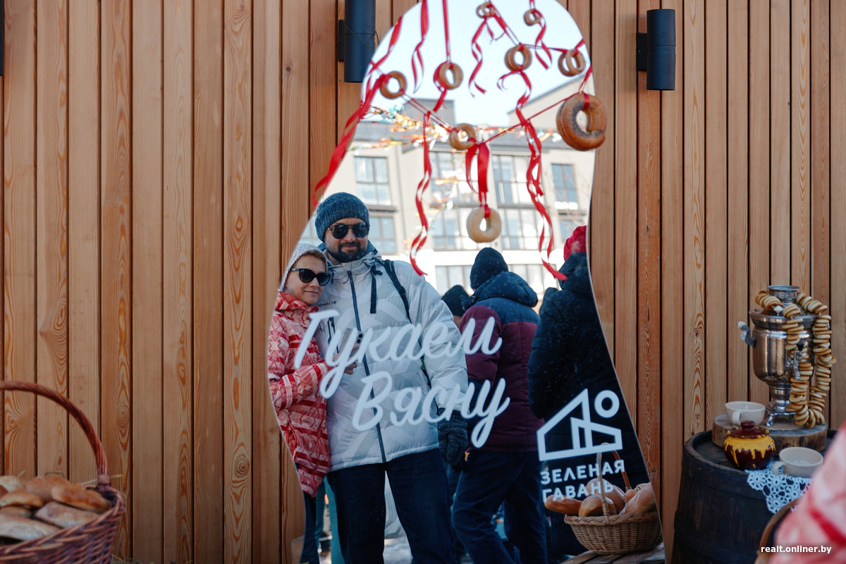 С блинами и бросанием валенков. В микрорайоне «Зеленая гавань» прошел праздник «Гуканне вясны»