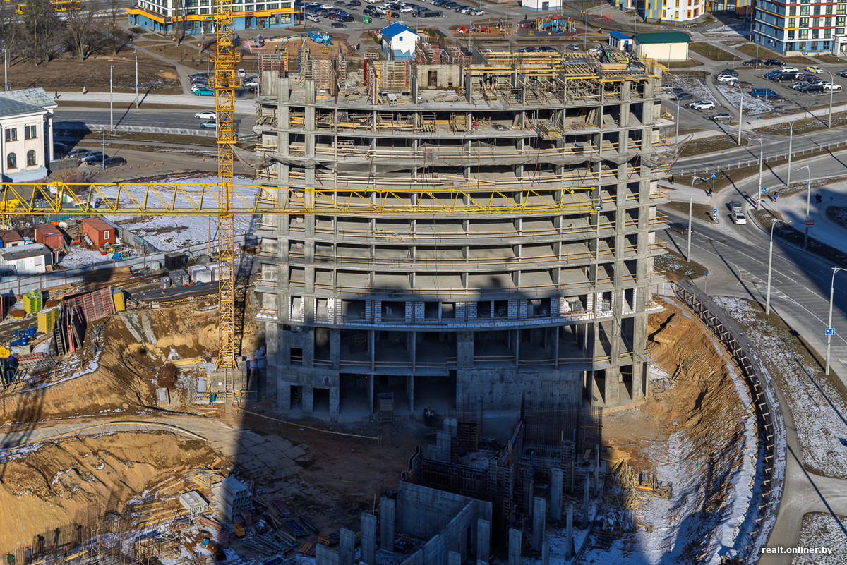 Изначально возвести весь комплекс застройщик планировал к январю 2026-го. Но, судя по темпам, вряд ли уложится. Сейчас над территорией возвышается только один корпус. Он вырос до десяти с половиной этажей. И уже совсем не робко выглядывает из-за «плеча» аэропорта. Остальные запланированные постройки пока на уровне котлована либо «пробиваются» до первого этажа.