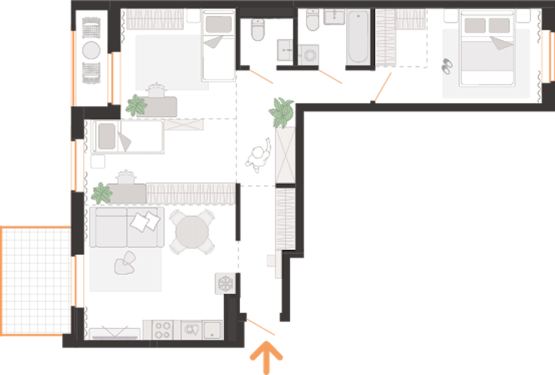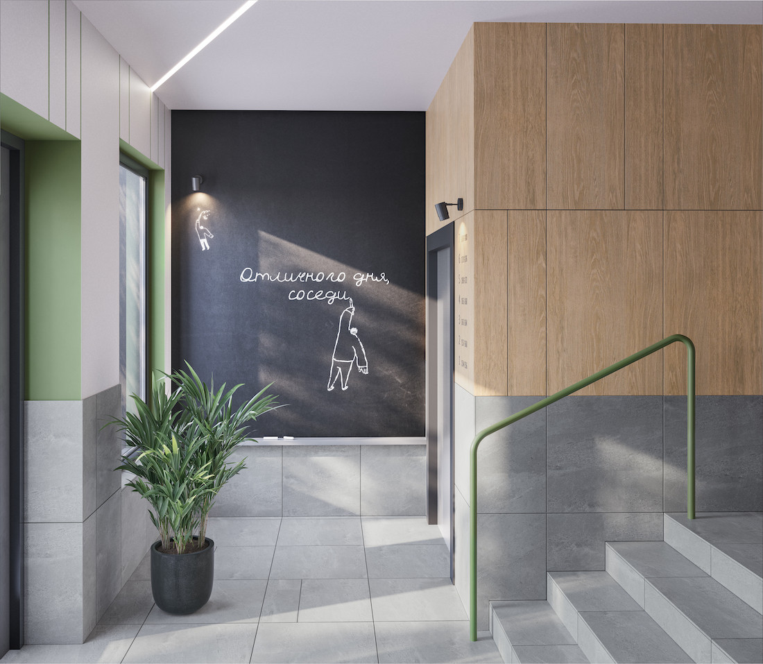 В проходных подъездах по традиции разместятся колясочные и лапомойки. Жильцам также обещают умные домофоны Home ID и видеонаблюдение. Во дворе (закрытом от машин, конечно же) собираются установить минималистичные арт-скульптуры животных. Территорию разделят на зону отдыха и площадку для малышей. Установят также и велобокс.