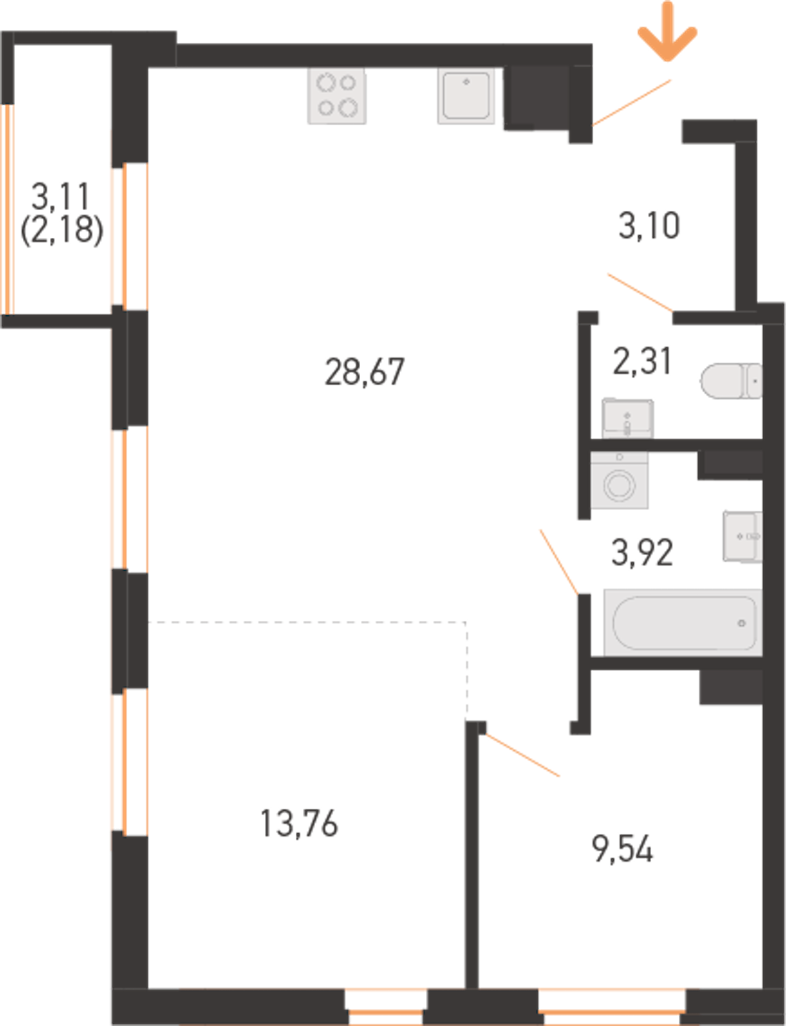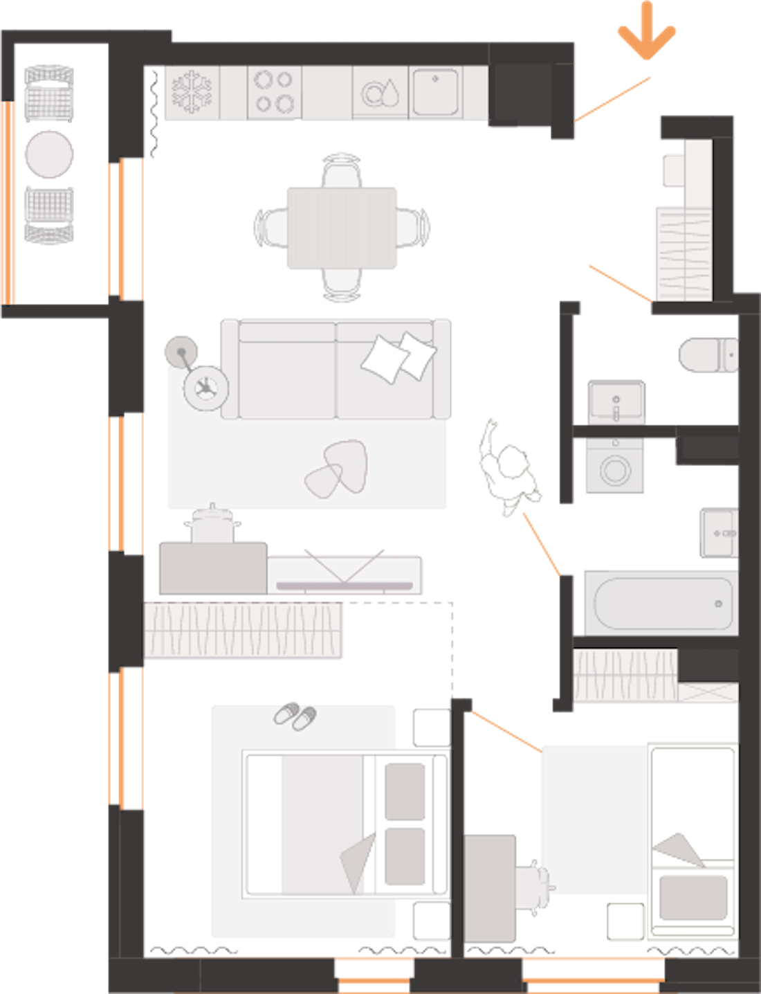 Квартиры будут иметь различный метраж и планировки. Самая большая займет 103 «квадрата». Высота потолка «стандартно-монолитная»: 2,7 метра. Жилье будет передаваться без отделки. Но в третьей и четвертой секциях в перспективе появятся варианты с готовой отделкой «Копенгаген» и White Box.