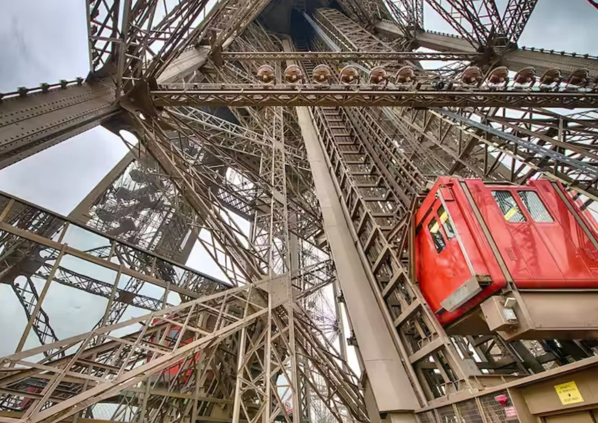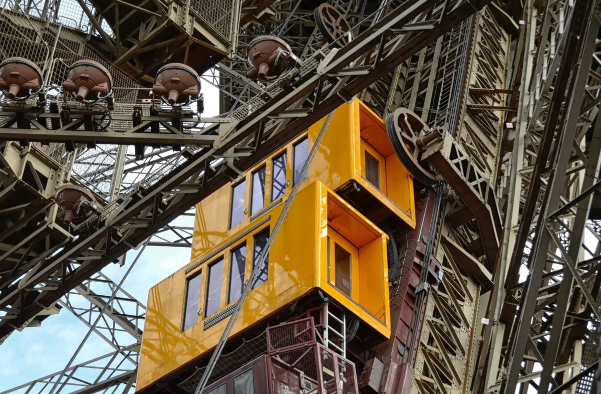 Французская компания Fives-Lille разработала для восточной и западной опор Эйфелевой башни лифты, приводимые в движение с помощью гидравлических насосов. Со второго этажа действовали уже куда более традиционные вертикальные лифты разработки инженера Леона Эду. Однако и они представляли собой систему из двух взаимоуравнивающихся кабин. Пока одна поднималась вверх, вторая выполняла роль противовеса.