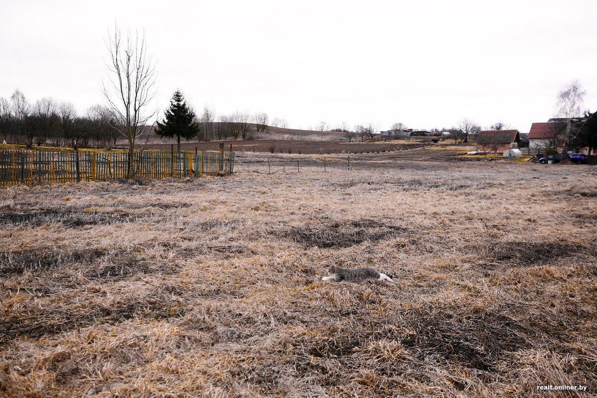 Пожалуй, самым жирным лотом является участок в деревне Леонтьевичи на улице Центральной, 10Б. Его оценили аж в начальные 85 000 рублей. На карте видно, что он достаточно вытянутый по форме. Рядом — соседние дома, но самое главное — зеленые просторы и деревья.