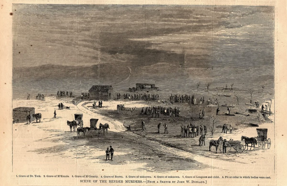 В общей сложности по закону 1862 года было роздано сразу два миллиона гомстедов, 12% территории страны. Один из наделов в канзасском округе Лабетт в 1870-м получила и некая семья Бендеров, приехавшая откуда-то с восточного побережья. Их участок в 160 акров находился вплотную к Большой тропе осейджей, а потому кроме занятия сельским хозяйством новоприбывшие решили зарабатывать еще и на обслуживании транзитных потоков, проходящих по дороге.