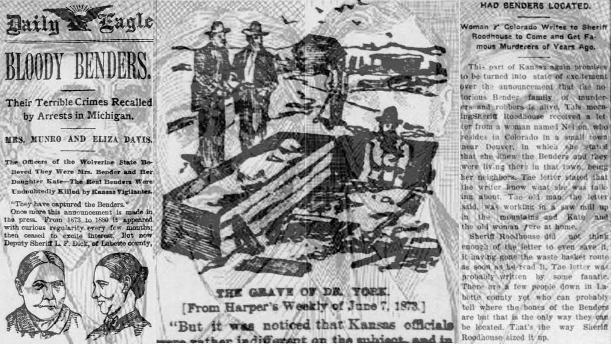 Когда масштаб преступной деятельности семьи стал понятен, возмущенные жители Канзаса объявили на нее охоту. Можно предполагать, что в случае поимки суд над Бендерами был бы кратким и суровым. Проблема в том, что найти их так и не смогли. Их фургон обнаружили через три дня в 12 километрах от гостиницы. Путь преступников проследили и дальше: они пересели на поезд и с пересадками отправились в сторону Техаса.