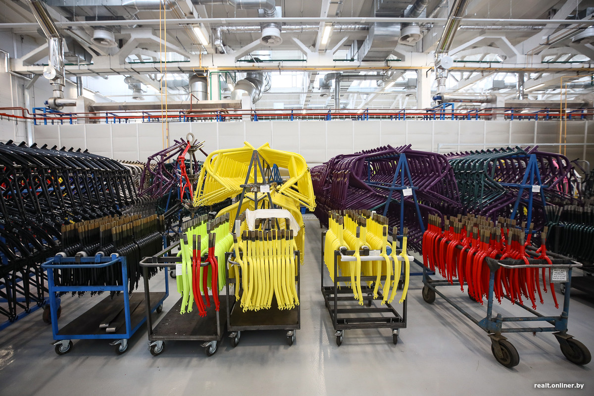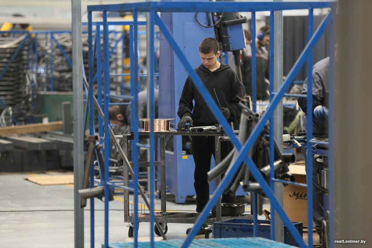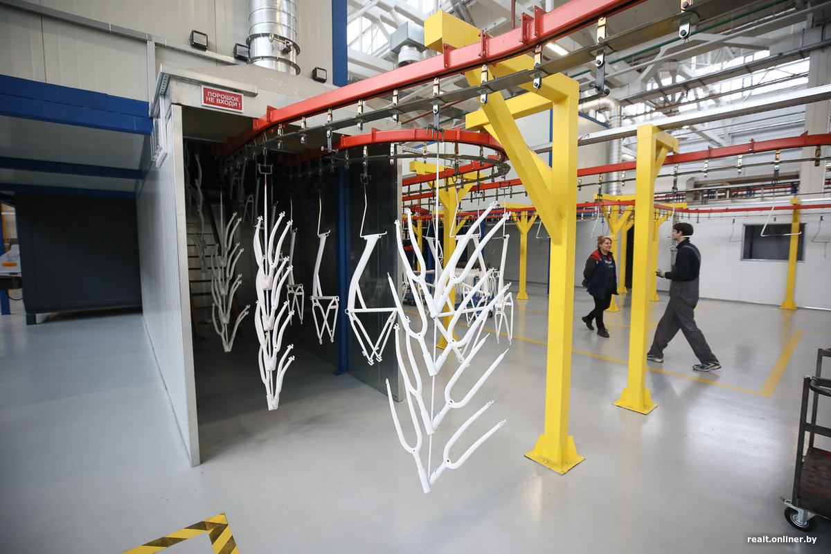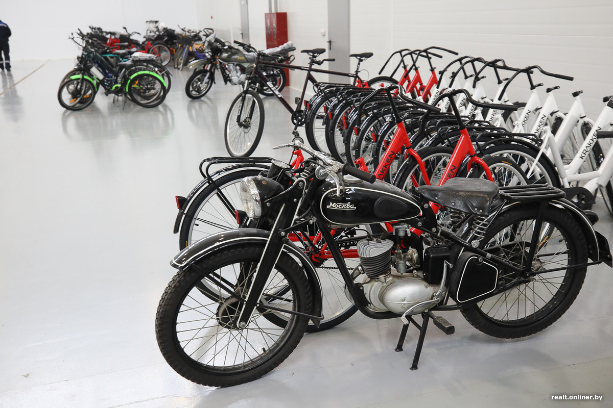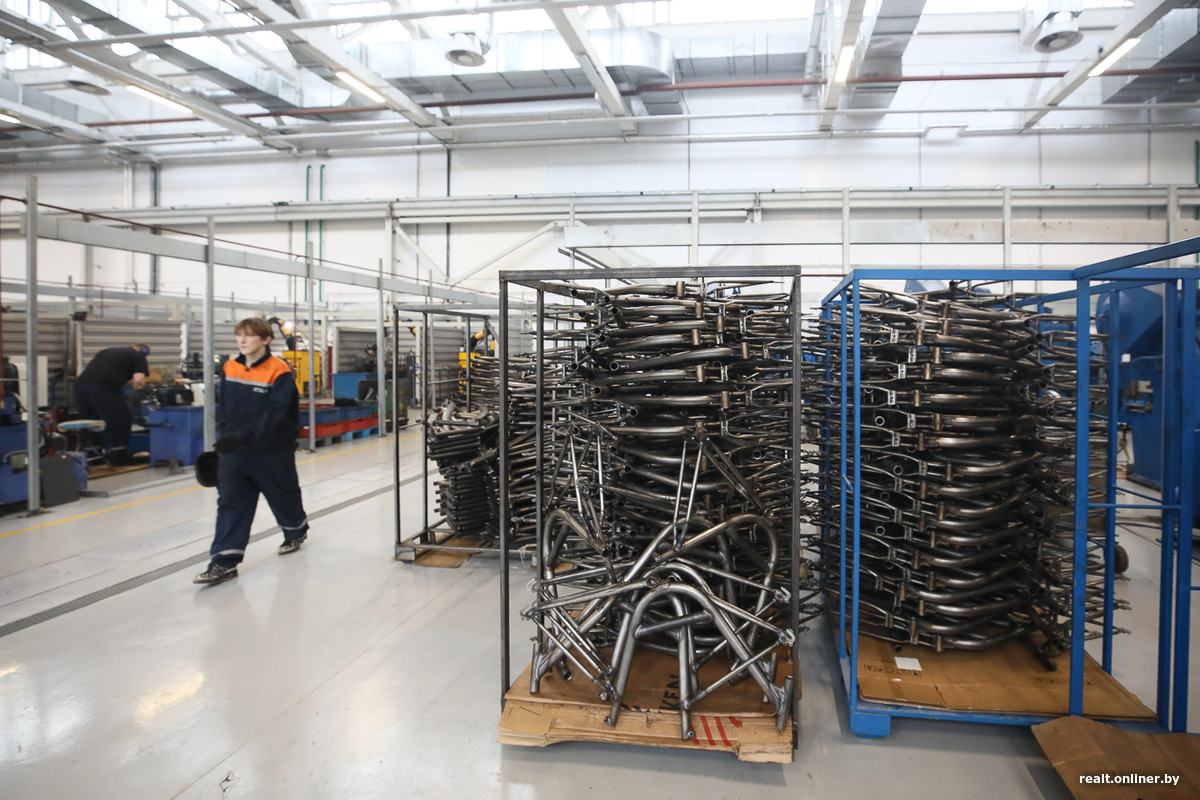 Следующий объект, куда нам удалось попасть, стал одним из самых крупных на территории Минского городского технопарка. Он вместил в себя не только новые арендные площади, но и производство ООО «МотоВелоЗавод» — единственного в стране и одного из немногих в Европе завода полного цикла. В это сложно поверить, но на реконструированных площадях до сих пор собирают те самые двухколесные «Аисты» и легендарные мотоциклы М1А. Здесь можно увидеть, как куски необработанного металла, свернутые в трубы, превращаются в новый транспорт.
