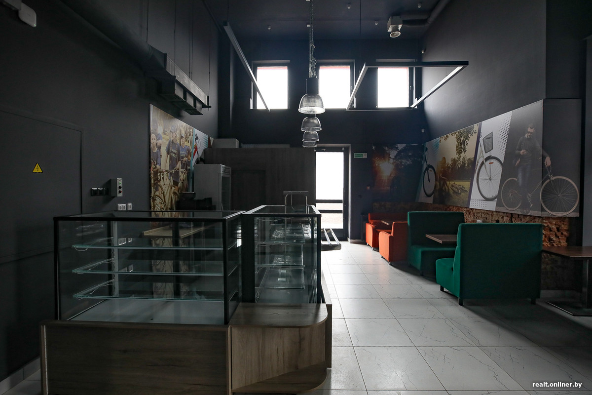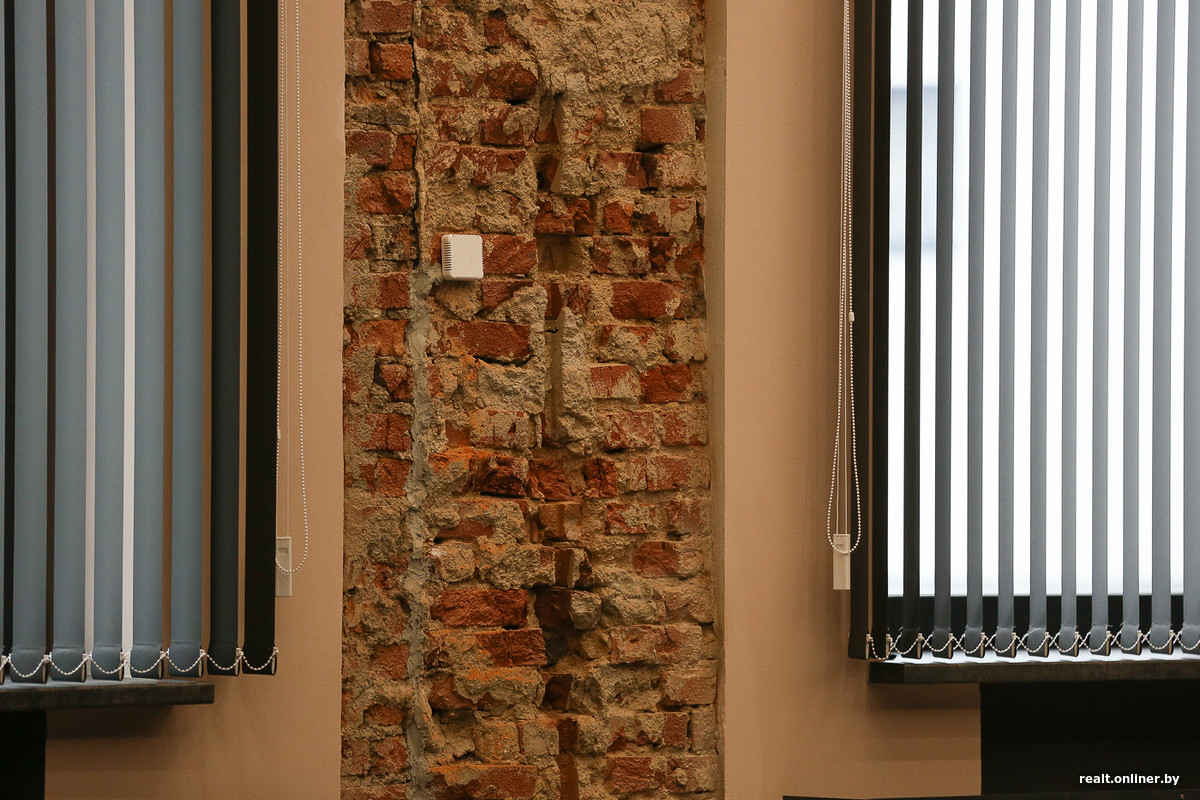 Четырехэтажное коммерческое здание удачно вписалось в общий индустриальный антураж. Его фасад тоже оформили стеновыми панелями под кирпич. Что скрывается за стеклами, разглядеть пока сложно, но удаленную экскурсию по временно пустующим площадям Владимир для нас все-таки провел.