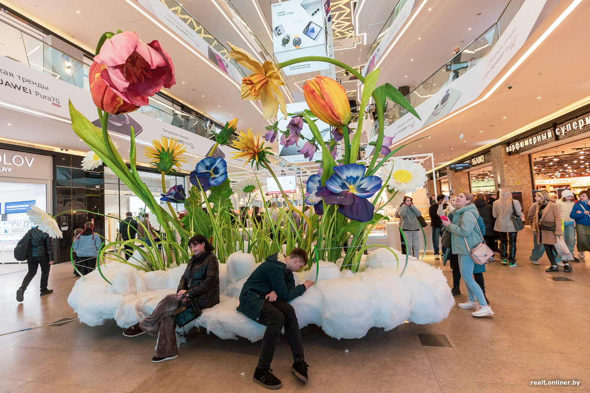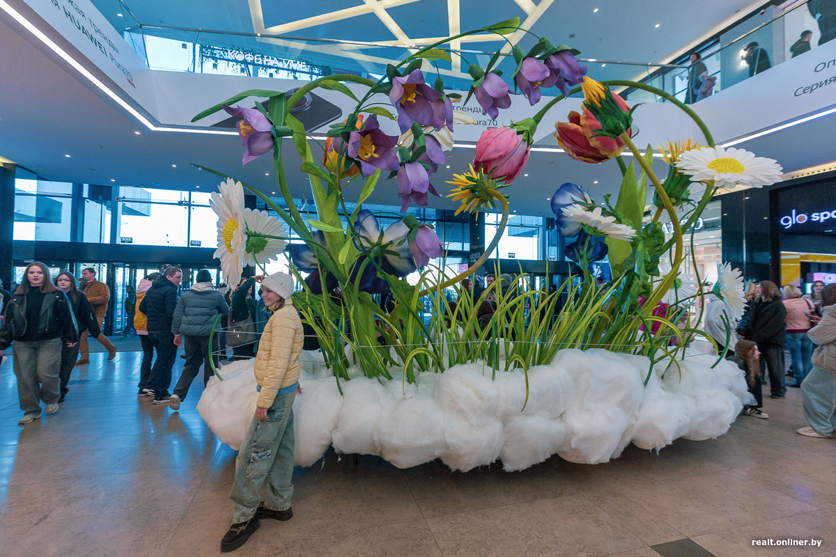 В минских торговых центрах распустились гигантские цветы — весна явно решила прийти по расписанию, пусть и не на улице, а в помещениях.