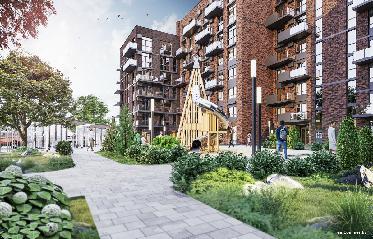 Архитекторы старались расположить дома таким образом, чтобы из каждого окна открывался симпатичный пейзаж. Кто-то увидит Брестскую крепость, кто-то — колесо обозрения… Ну а кому-то, увы, достанется вид на соседние многоэтажки и административные здания.