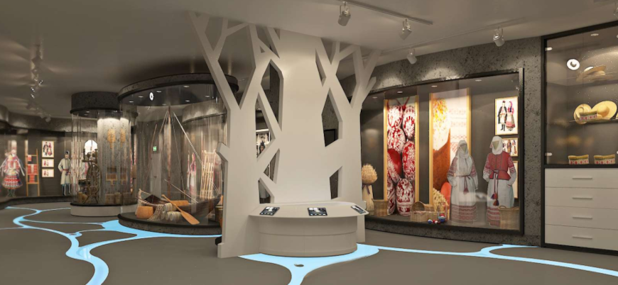 Музей вместит в себя четыре этажа. На первом уровне, кроме главного вестибюля, гардероба и буфета, расположатся зал для временных выставок и конференц-зал. По парадной лестнице можно будет подняться на 2-й этаж, где будет представлена основная экспозиция, которая растянется на несколько залов. Акцентом станет атриум — свободное пространство в центре объекта, которое начнется со 2-го этажа и дойдет до самого верха. Его планируют украсить художественным витражом с национальной тематикой.