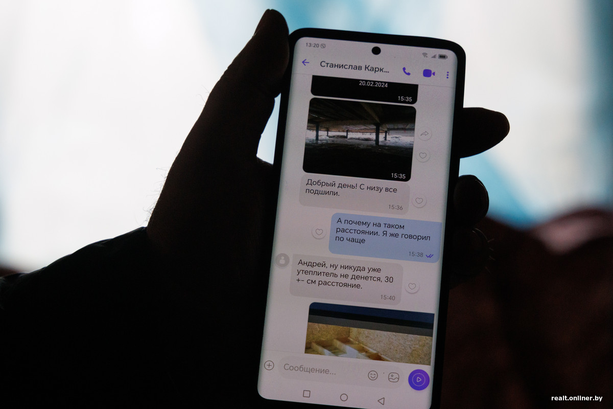 Потом он стал предъявлять за то, что утеплитель снизу не подшит доской — только сетка установлена. Мы объясняли: в договоре эти работы не прописаны. Андрей Николаевич сказал, что доплатит. Мы подшили за свой счет. Стас лично ползал под этим домом и все подшивал.