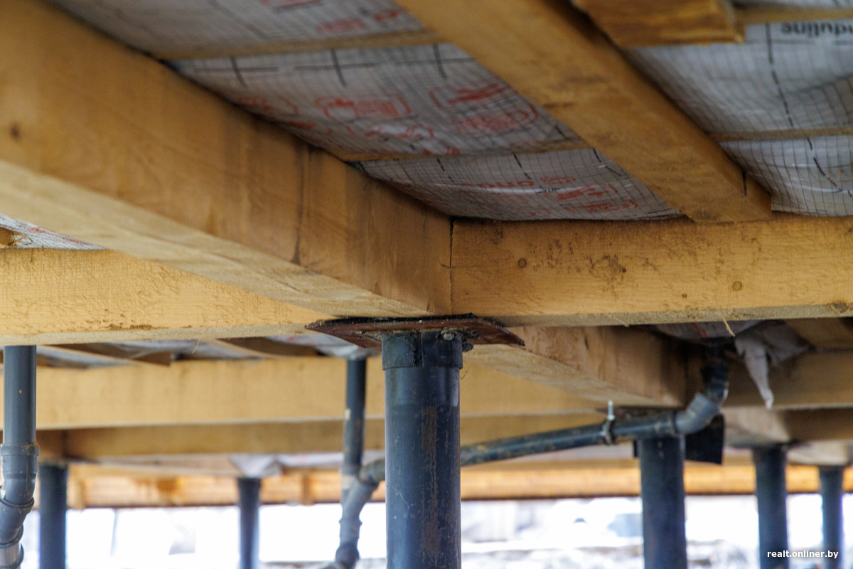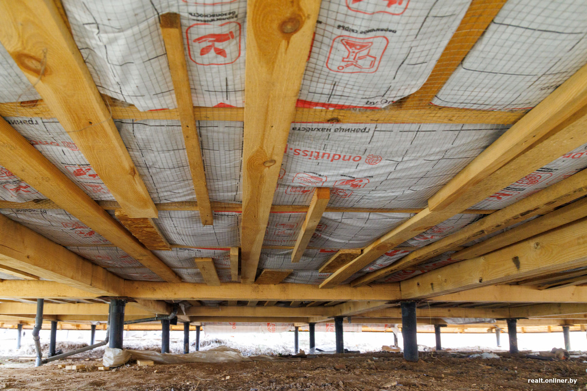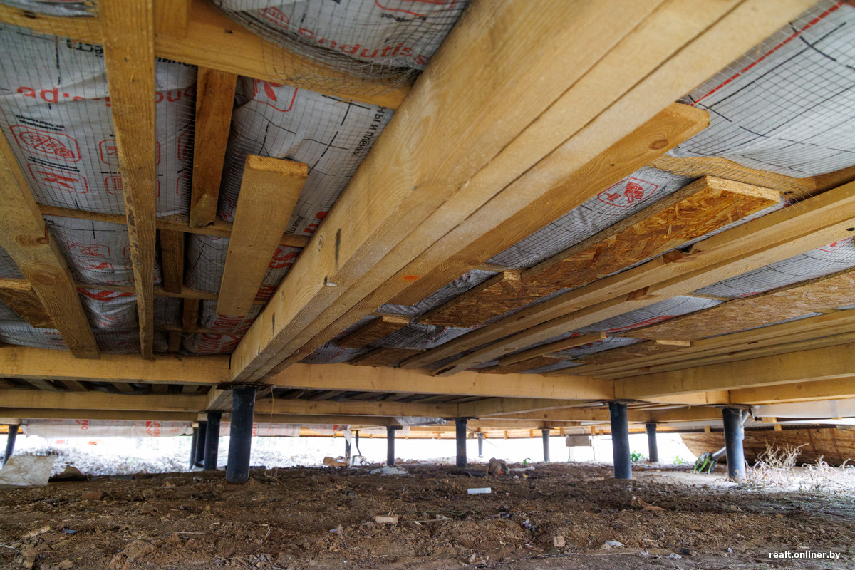 — Вообще, конфликт у нас начался из-за того, что ребята не подшили со стороны улицы черновой пол, — продолжает хозяин. — Набили три планочки, и все — якобы этого хватит. Но по уму черновой пол бьется либо сплошняком, либо с зазором в два сантиметра. А у них — «и так сойдет». Аргумент «ну, утеплитель никуда не вывалится, там сетка стоит» меня не устроил.