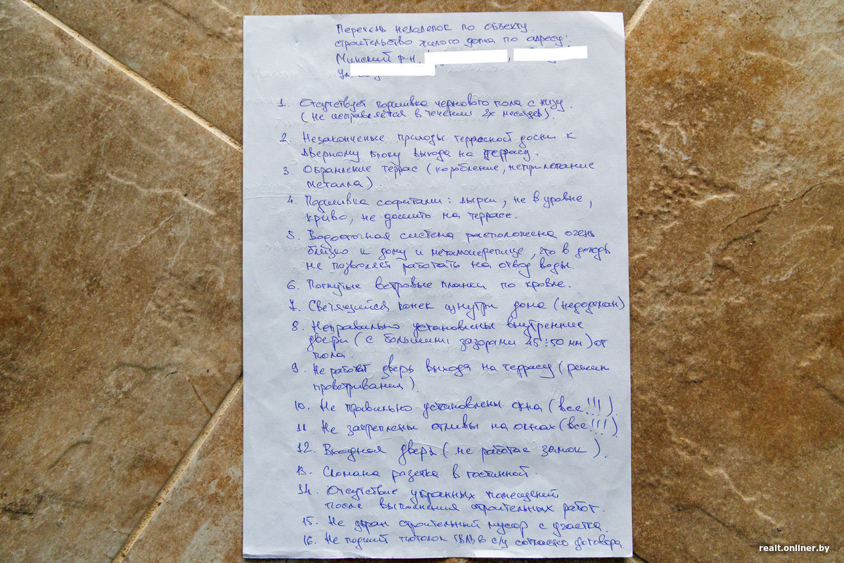 Ко мне на участок приехали специалисты, осмотрели дом и отразили все недочеты. Заняло это более ста страниц (вместе с фотографиями недоделок)!