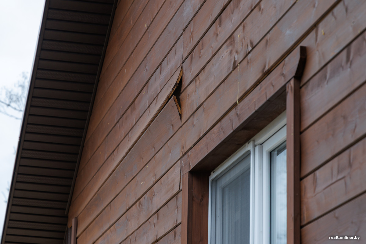 — Имитация бруса, которую использовали для отделки фасада, начала отходить. Просто отщелкивалась сама по себе, причем в разных местах, — утверждает мужчина. — Закрепили дерево абы-как, вот оно и поехало. Приходится теперь самому сажать планки на саморезы.