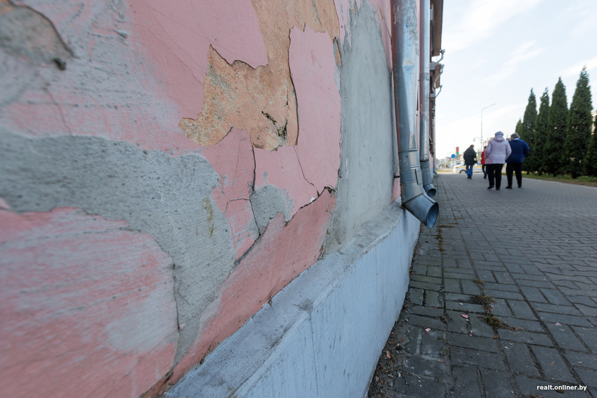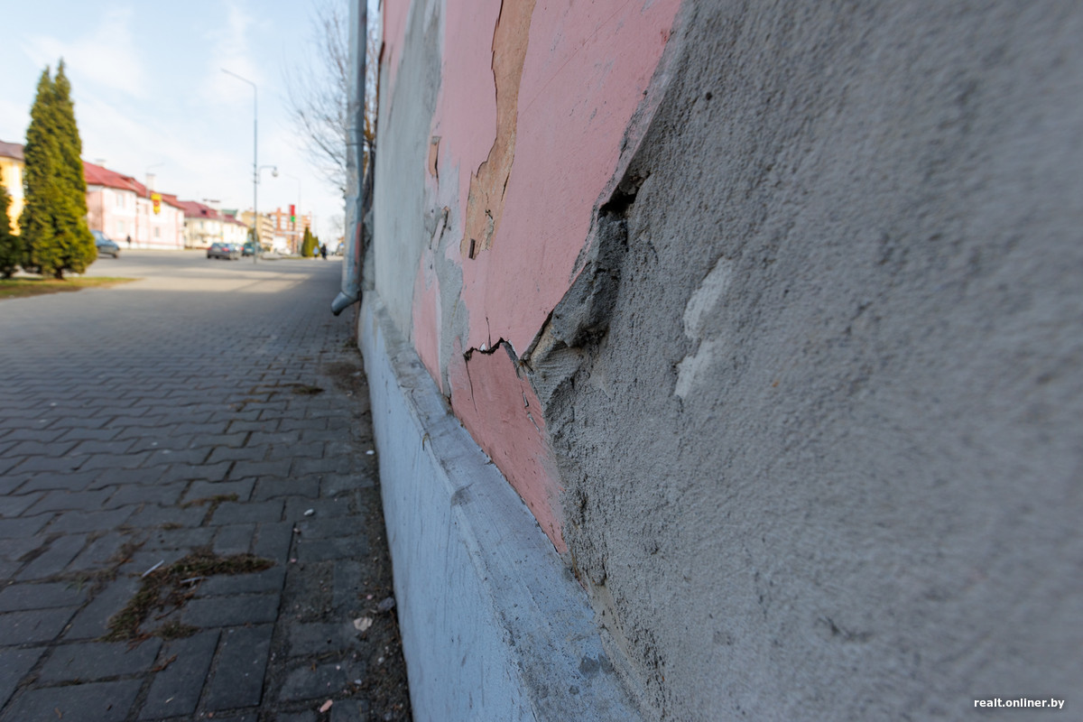 Розовой двухэтажке повезло чуть больше (хотя сразу и не скажешь): так как одним боком она выходит на магистральную улицу Брестскую, ремонты на ее долю периодически выпадали. Но не капитальные. Так, по мелочи. Из масштабного — поменяли кровлю.