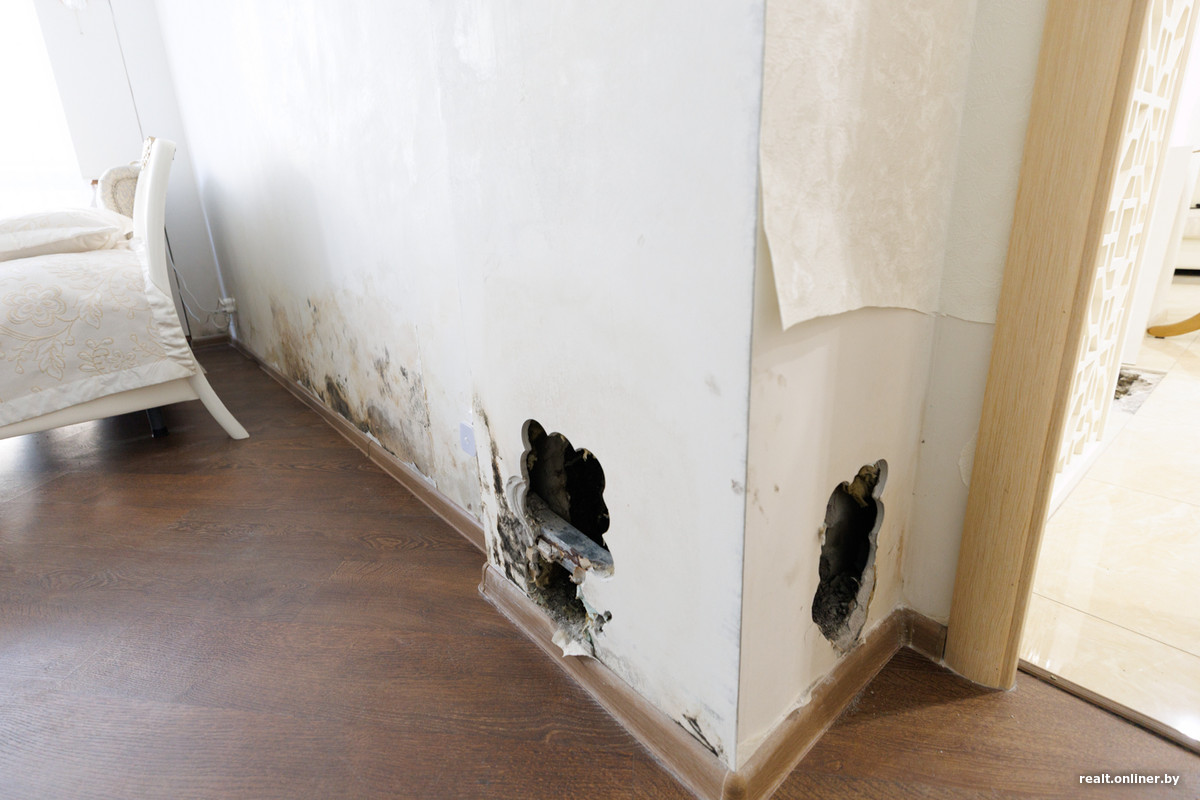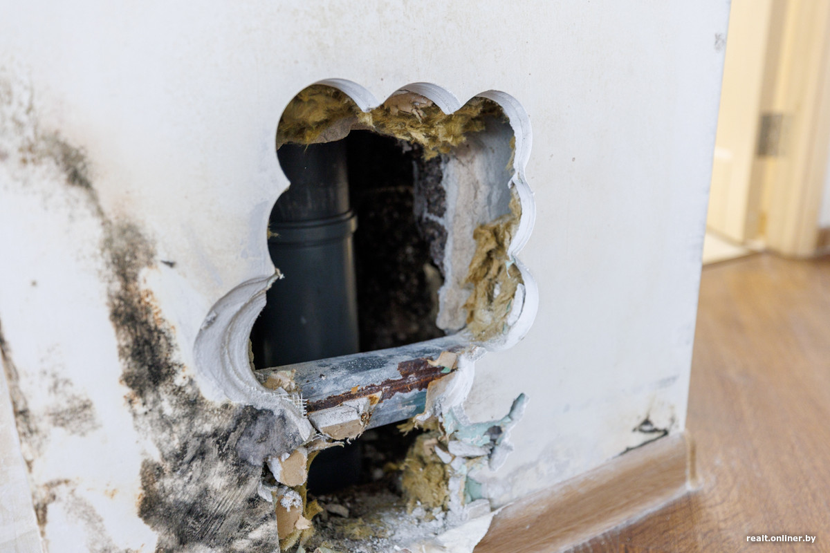 — В некоторые моменты у нас по пять человек работало, изучали все, что можно. Но никак не могли понять, откуда льет. Решили в итоге проверять все квартиры сверху. К сожалению, в части квартир люди не живут, еще где-то половина сдается, поэтому нормального доступа к соседям не было. Пришлось насверлить дыр в нашем шкафу-купе, чтобы «телевизором» проверить ситуацию наверху. Но и это не внесло ясности: разрушения в нашей квартире множились, а причина все ускользала, — делилась с Onlíner всеми перипетиями минчанка.