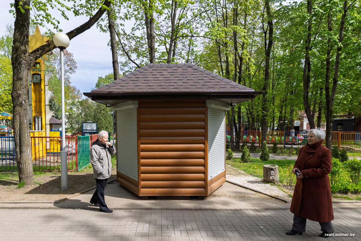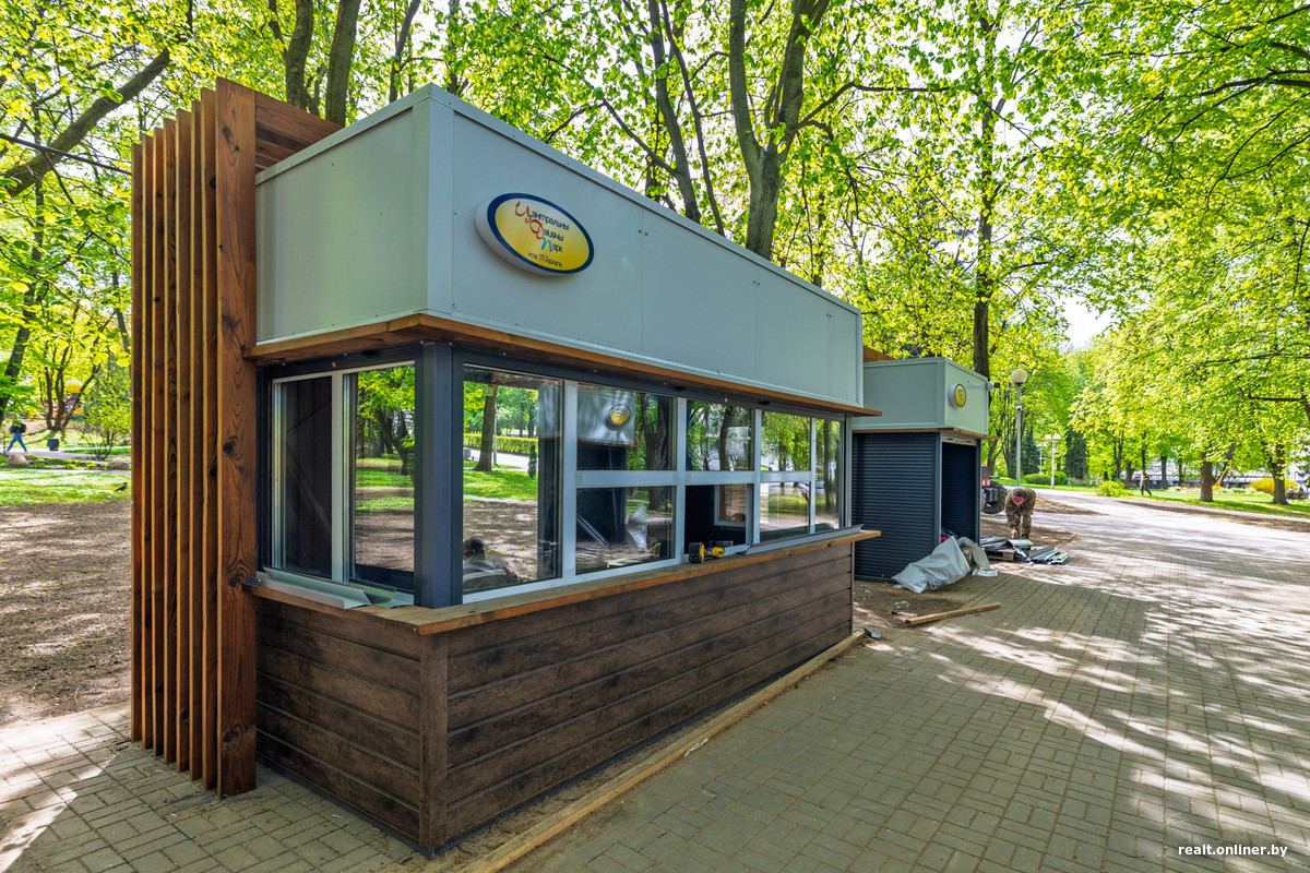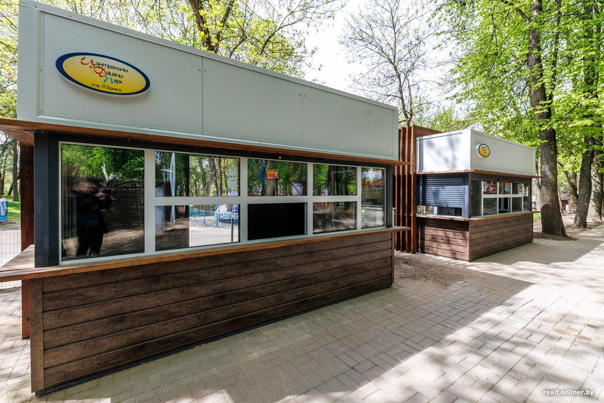Парк собирались избавить от привычных (и неэстетичных) ларьков, в которых продавались еда и игрушки. Вместо железных и пластиковых киосков решили установить павильоны с визуальными отсылками в прошлое.